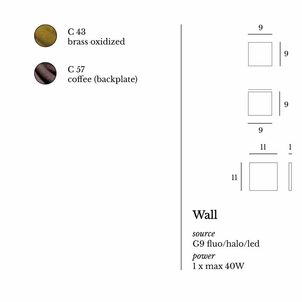 Wandleuchte mit Struktur aus oxidiertem Messing und Unterbau aus pulverbeschichtetem Stahl. Erhältlich in zwei Größen in der runden oder quadratischen Form. Diffusor aus gehärtetem Glas für direkte und indirekte Lichtemission. Venere 1 ist auch in benutzerdefinierten Farben erhältlich. Fordern Sie ein Angebot an: clienti@viadurini.it .