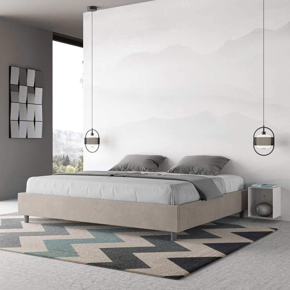 Kingsize-Bett 180x200 cm, gepolstert aus Melaminplatten und mit Mikrofaser bezogen, vollständig in Italien hergestellt. Dieses Kingsize-Bett besticht durch sein klares, minimalistisches Design . Seine zurückhaltende Ästhetik und Vielseitigkeit ermöglichen eine mühelose Integration in jedes Ambiente. Ein besonderes Merkmal ist das Fehlen eines traditionellen Kopfteils . Dadurch eignet es sich ideal für die Platzierung an ungewöhnlichen Orten, beispielsweise unter einem Fenster, im Dachgeschoss oder in der Nähe einer dekorativen Wand, ohne die Aussicht zu beeinträchtigen oder den gewünschten Effekt zu erzielen.