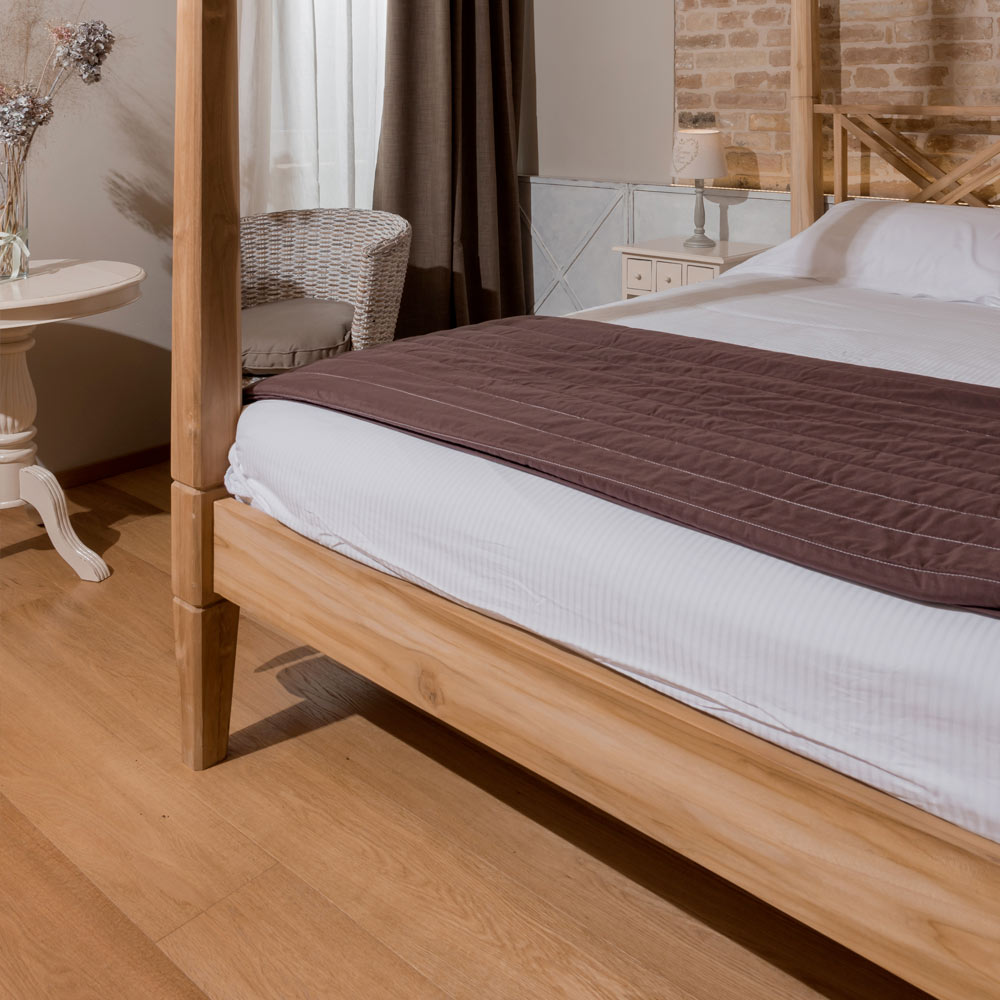 Doppelbett (180 x 200 cm) mit Himmelbett aus massivem Teakholz – Tempera