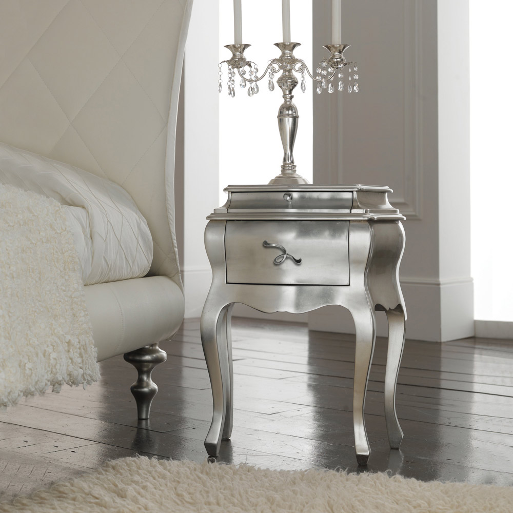 Bett aus Blattsilber, Nachttische aus Blattsilber
