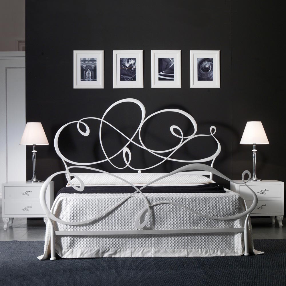 Doppelbett mit Kopfteil aus Eisen und 2 Nachttischen Made in Italy