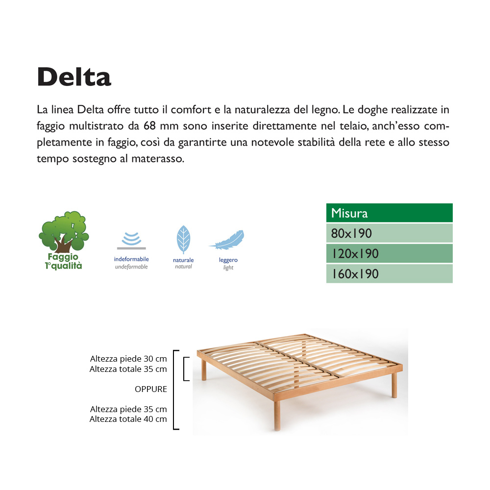 Die Bio-Delta-Linie bietet den ganzen Komfort und die Natürlichkeit von Holz . Die Federleisten aus 68 mm starkem Buchenschichtholz werden direkt in den ebenfalls komplett aus Buche gefertigten Rahmen eingelegt und gewährleisten so eine hohe Stabilität der Unterlage und geben gleichzeitig der Matratze Halt.