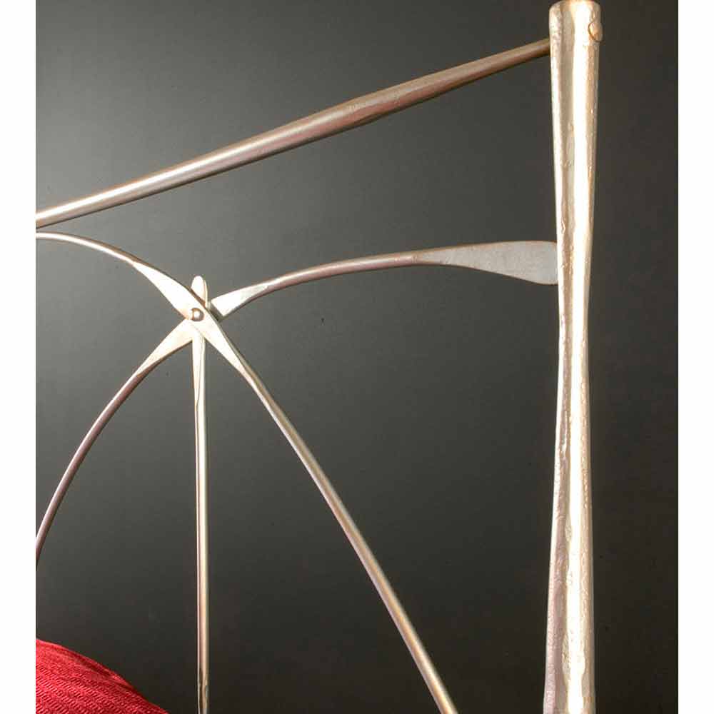 Das schmiedeeiserne Bett in der Variante DOPPELTES KOPFTEIL MIT WANDBEFESTIGUNG erfordert den Einbau eines 160 cm langen Bettgestells, das von eigenen Beinen getragen werden muss. Bei besonderen Anforderungen in Bezug auf die körperliche Konstitution, die Kombination mit vorhandenen Bettgestellen oder einfach aus ästhetischen Gründen kann dieses Modell dank unserer handwerklichen Produktivität in Höhe und Breite verändert werden.