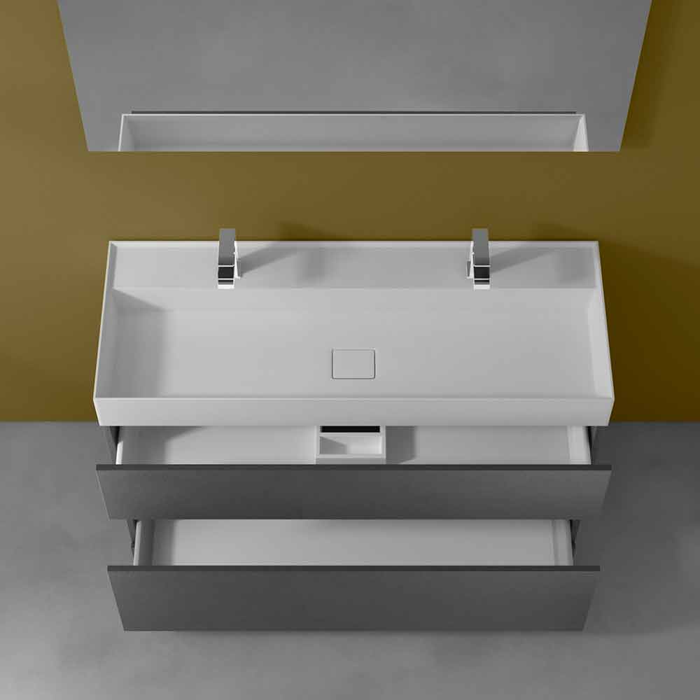 Badezimmerschrank mit Doppelwaschbecken, modernes Design aus Laminat in verschiedenen Ausführungen mit Korb und Schublade, hergestellt in Italien.