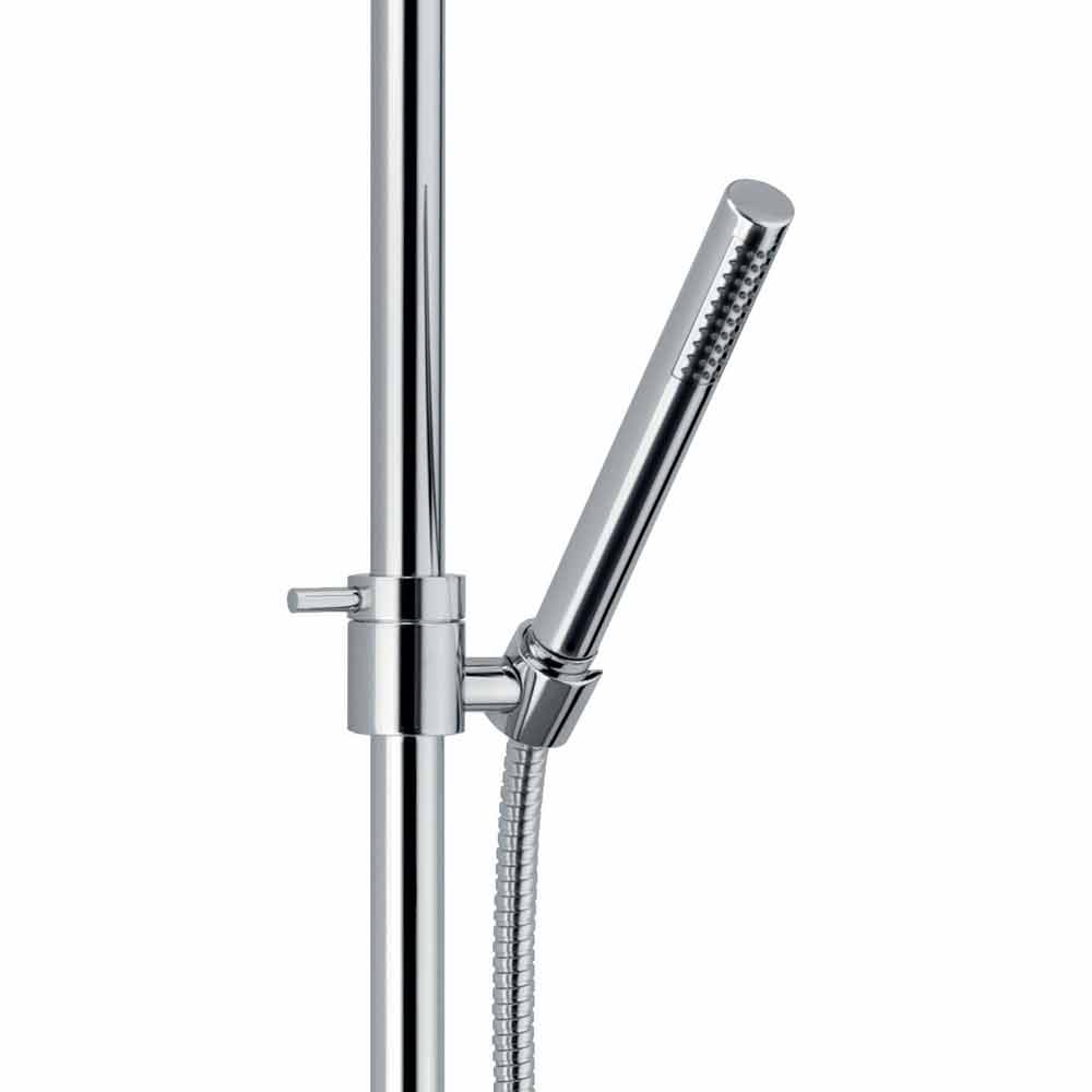 Funktionalität noch mehr und ermöglicht es, eine Duschsäule zu erhalten, die so schön und raffiniert ist, wie sie praktisch und einfach zu bedienen ist. Mit der Schiebestütze können Sie die Höhe der Handbrause einstellen, mit dem 150-cm-Schlauch können Sie sie auf völlig handliche und komfortable Weise verwenden.