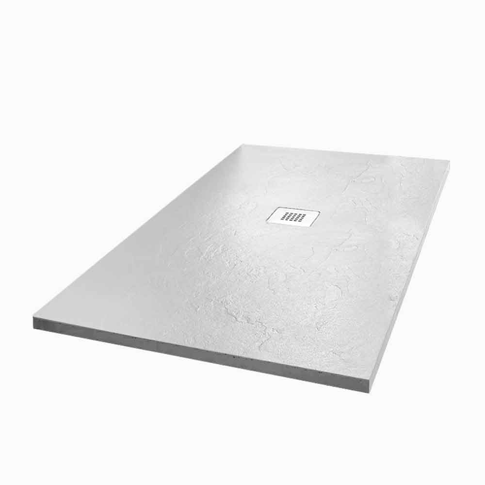 Rechteckige Duschwanne aus weißem Harz, gekennzeichnet durch eine Schiefer-Effekt-Textur . Komplett mit Stahlgitter und Abfluss. Zeitgemäße Qualität und Eleganz machen dieses Produkt einzigartig und verleihen dem Raum ein äußerst innovatives, edles Aussehen. Die Verwendung von Harz und sein raffinierter Charme verleihen einem Badezimmerbereich voller Persönlichkeit und raffiniertem Geschmack Leben, ohne den grundlegenden funktionalen Aspekt zu vernachlässigen, der durch die Festigkeit und Beständigkeit des Materials erhöht wird und gleichzeitig für Rutschfestigkeit, Antibiotika und Flecken sorgt beständig.