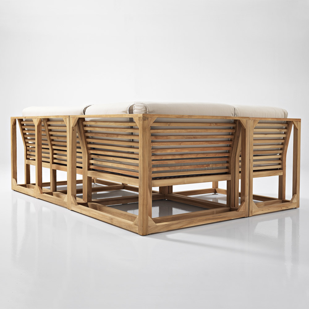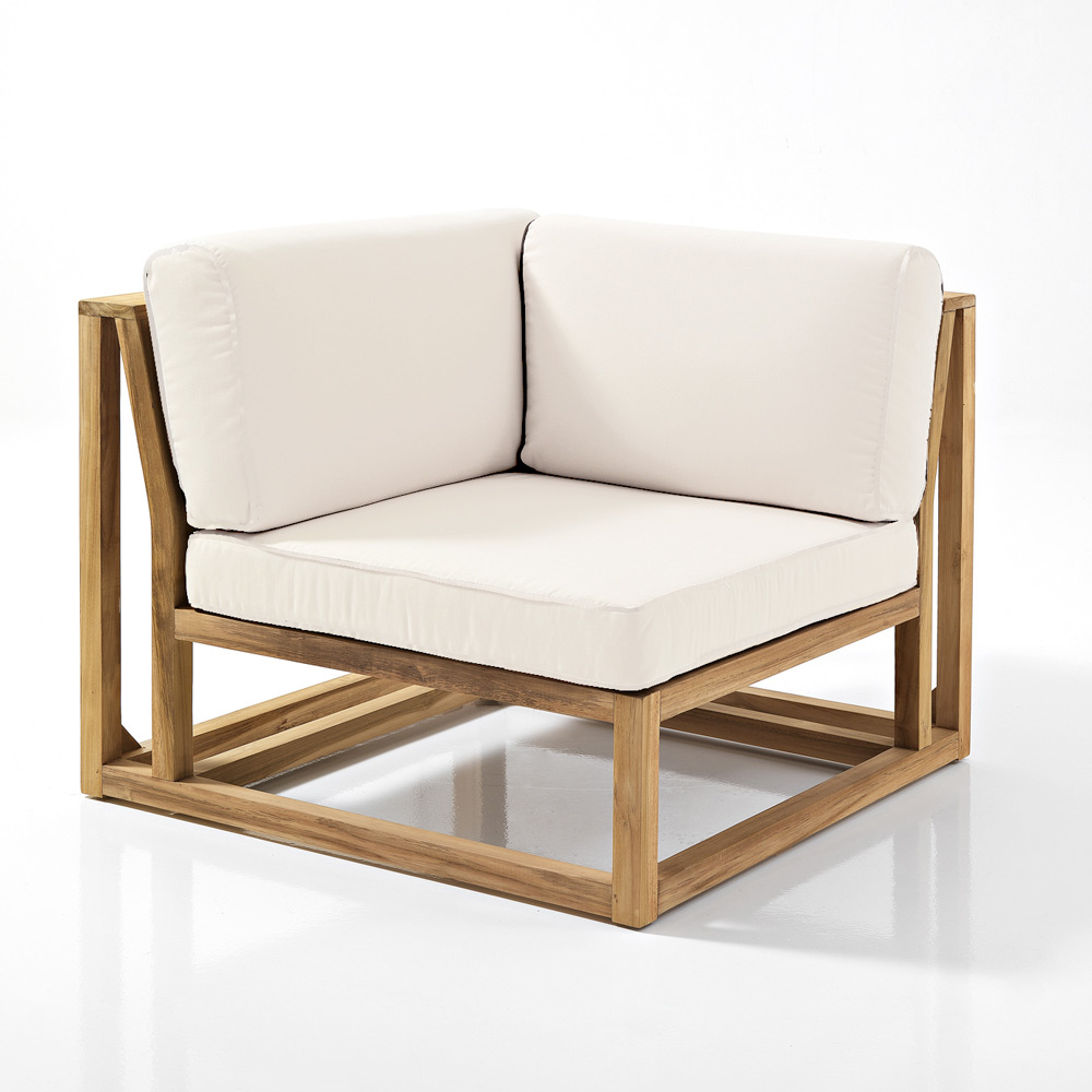Eck-Gartensessel aus natürlichem Teakholz und Kissen