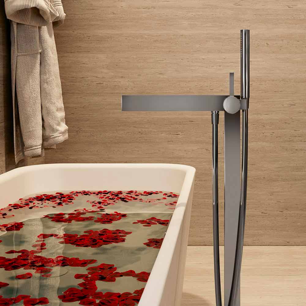 Diese wundervolle und elegante Linie von Badarmaturen kombiniert runde und quadratische Formen, um eine einzigartige und luxuriöse Umgebung zu schaffen. Das Design ist exklusiv und kann die Einrichtung eines Badezimmers mit modernem Geschmack auf elegante und raffinierte Weise revolutionieren. Es bietet auch eine praktische und funktionale Umstellung von einem Auslauf auf eine in die Wasserhähne integrierte Handbrause, sodass Sie in einem Arbeitsgang schnell und einfach von einem Modus in einen anderen wechseln können.