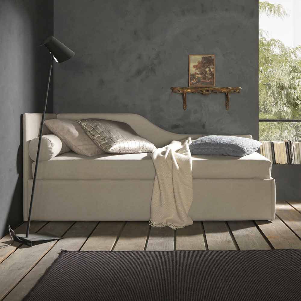 NB: Andere Stoffe sind verfügbar. Die Matratze ist nicht im Lieferumfang enthalten. Kontaktieren Sie uns für Informationen und/oder Angebotehttps://www.viadurini.de//data/prod/img/letto-singolo-con-testiera-sagomata-e-pannello-laterale-line8-bolzan-10.jpg1837.67InStockPolsterbettenBolzan Letti000.02019-05-28 10:13:51Made in Italy