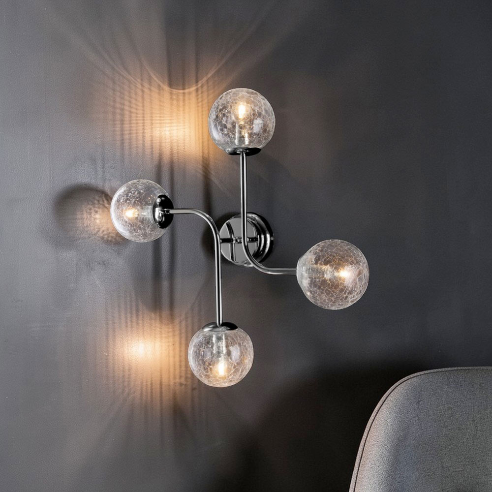 Schlicht, modern und optisch ansprechend: Diese Designer-Deckenleuchte aus poliertem Chromeisen ist eine zeitgemäße Beleuchtungslösung, die Räume mit dezenter Eleganz aufwertet. Die kompakte Struktur mit ausgewogenen Armen und kugelförmigen Diffusoren erzeugt ein raffiniertes Zusammenspiel von Volumen und Reflexionen, das dem Raum Tiefe verleiht.