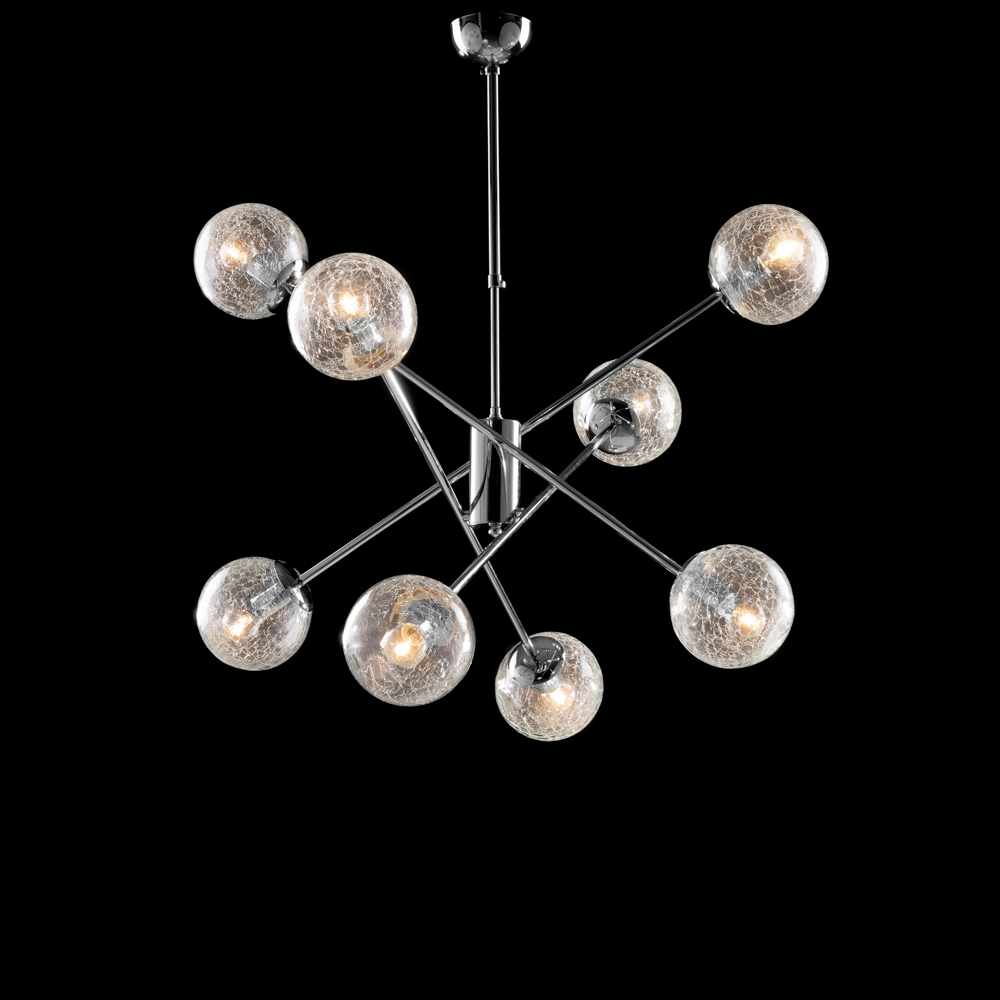 Die polierte Chromoberfläche verstärkt den Glanz des Metalls und optimiert die Lichtstreuung. Dadurch eignet sich diese Pendelleuchte ideal für moderne Wohnzimmer, Esszimmer, offene Räume, Designer-Ambiente und repräsentative Objektbereiche . Die leuchtenden Kugeln verleihen der Leuchte eine raffinierte und zeitgemäße Note und machen sie zu einem echten Gestaltungselement.