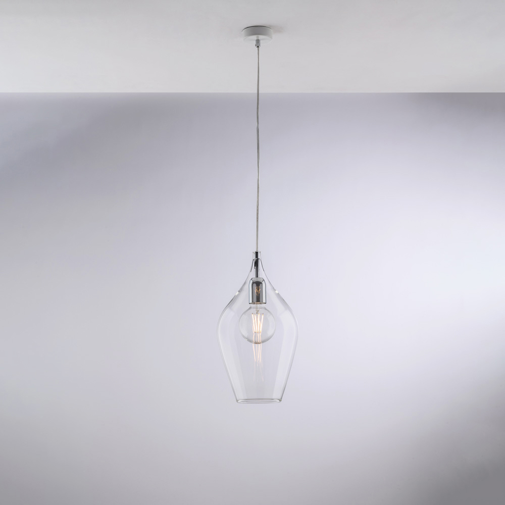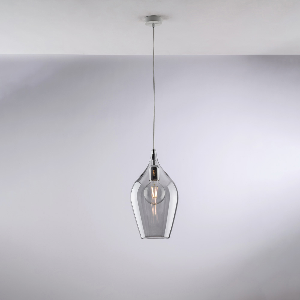Diese Pendelleuchte ist in den Ausführungen Transparent , Bernstein oder Grau erhältlich und passt zu verschiedenen Einrichtungsstilen: hell und minimalistisch in der transparenten Variante, warm und behaglich in Bernstein und elegant und modern in Grau. Sie eignet sich ideal für Küchen , Kücheninseln , Esstische , Flure , Leseecken und exklusive Objekträume – sowohl einzeln als auch in Kombination.