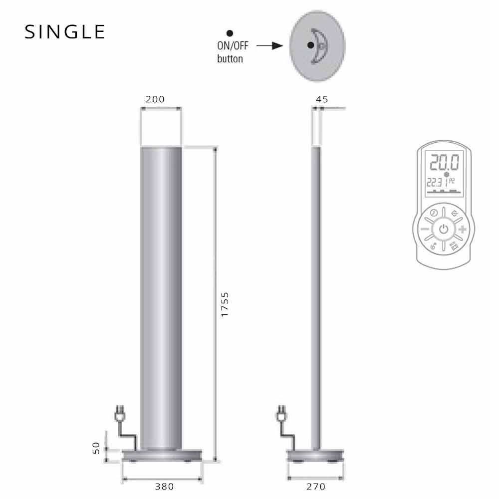 • H 1755 x L 380 x Leistung 250 Watt - einfach