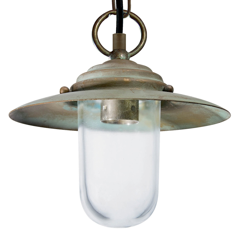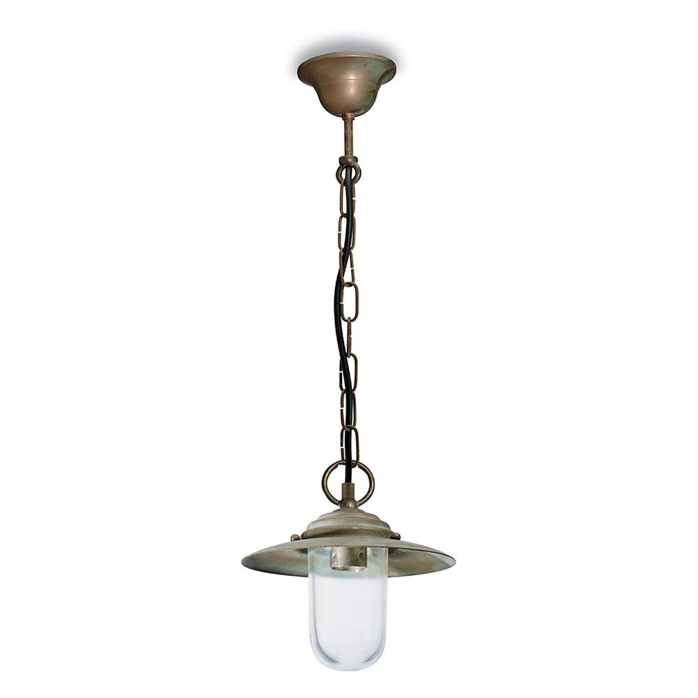 Diese authentische und zeitlose Außenleuchte erinnert an den Charme traditioneller Laternen und interpretiert ihn elegant neu. Die handgefertigte Messingstruktur besticht durch ihre antike Oberfläche , die die Materialität des Metalls hervorhebt und der Leuchte einen edlen, wohnlichen Look verleiht.
