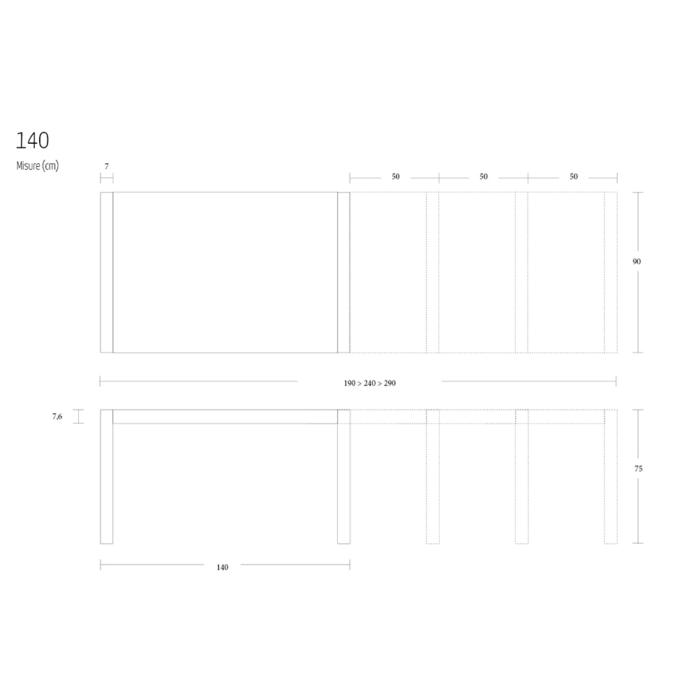 L 140/190/240/290 x P 90 x H 75 cm - 3 Verlängerungsplatten von 50 cm;