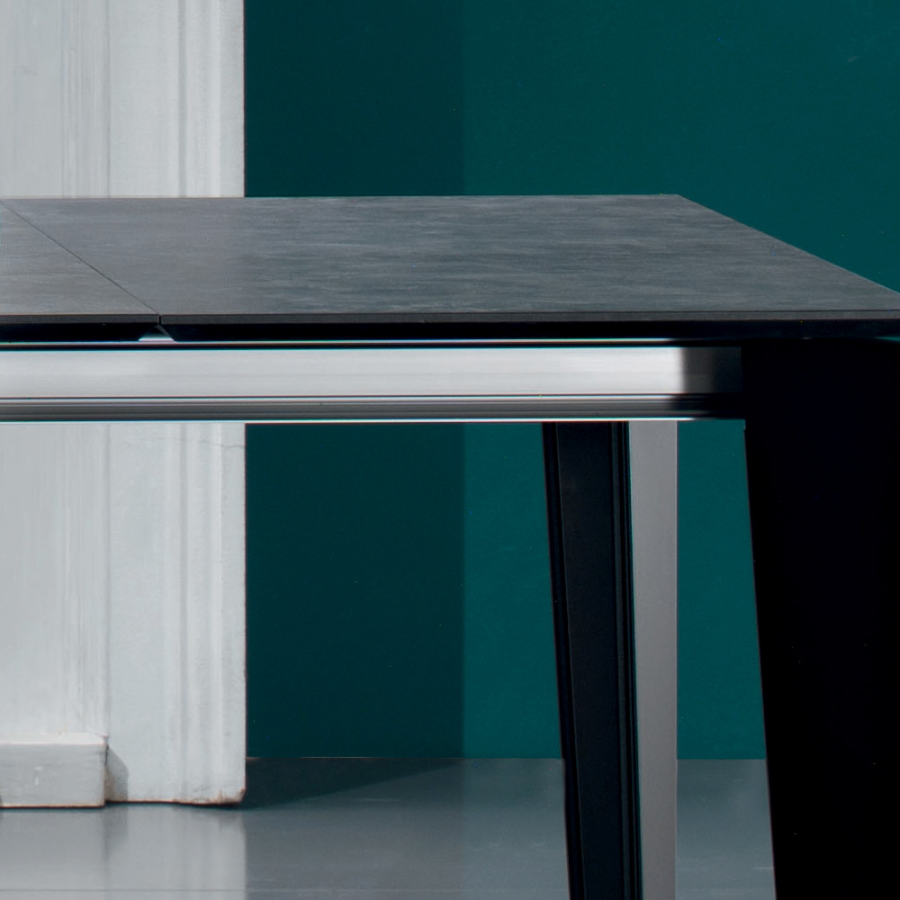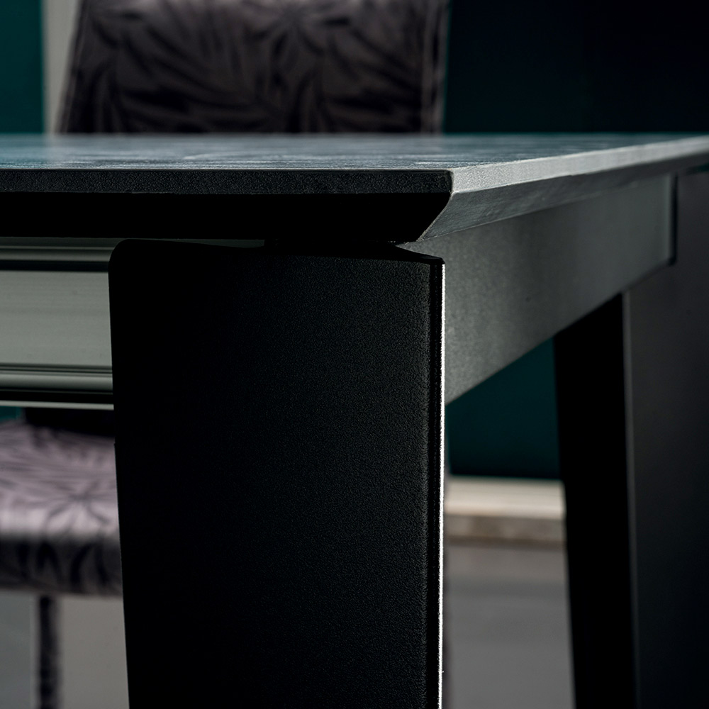 Esstisch mit ausziehbarer Platte aus HPL-Laminat in Steinoptik mit 45° abgeschrägtem Kantenprofil und schwarz lackiertem Stahlgestell . Ein in Italien handgefertigtes Einrichtungsaccessoire mit hochwertigen Materialien und 100 % Made in Italy , das die perfekte Verbindung von Eleganz und Funktionalität zum Leben erweckt. Seine Besonderheit stellt die praktische ausziehbare Platte dar, die eine Länge von 310 cm erreichen kann und so Platz für bis zu 16 Personen für wunderbare Mittag- und Abendessen in Gesellschaft bietet. Sein solides und elegantes Design wird durch die HPL-Oberseite unterstrichen und bereichert, ein Hochdrucklaminat, das äußerst beständig gegen Chemikalien, Abrieb und Kratzer ist und eine solide Auflagefläche mit ausgezeichneter Haltbarkeit im Laufe der Zeit bietet.
