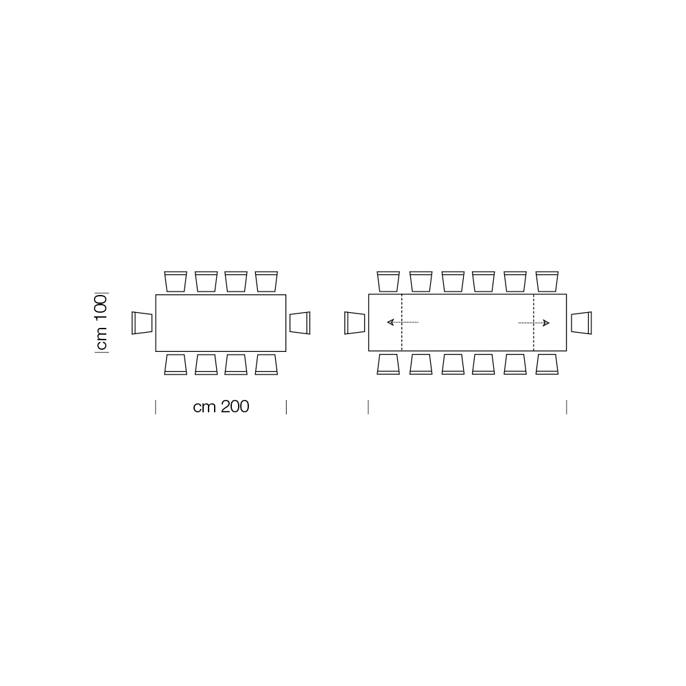 L 200 (278) x T 100 x H 77,7 cm 14 Sitzplätze (Dicke 12 mm).