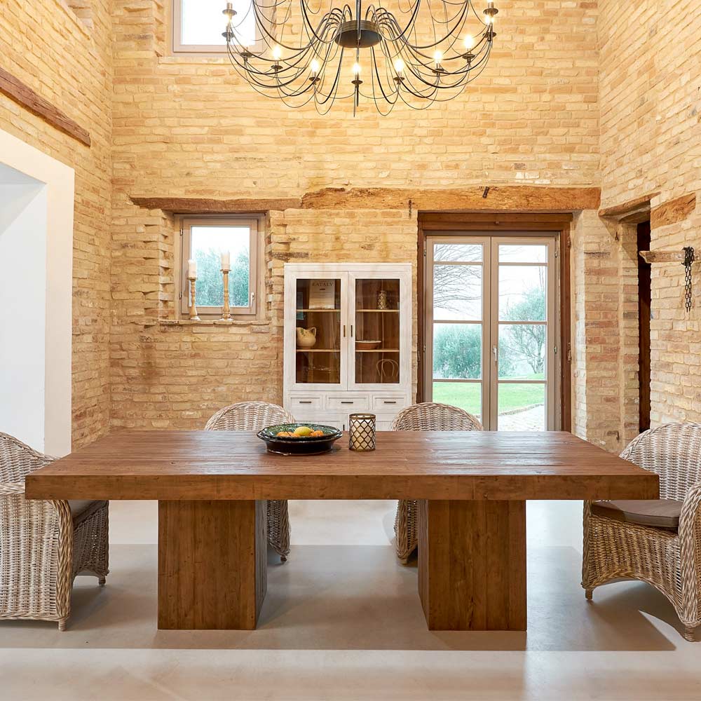 recyceltem Holz in natürlicher Kaffeefarbe mit doppeltem Sockel kombiniert mit