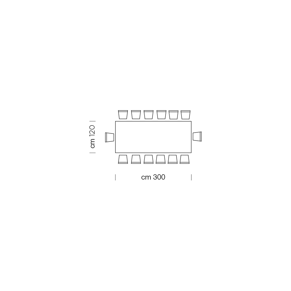 - L 300 x T 120 x H 73,5 cm (14 Sitzplätze).