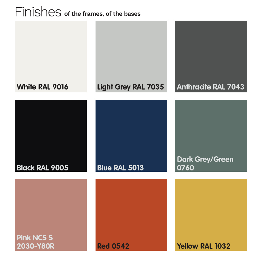 NB : Struktur und Sitzfläche des Stuhls sind in einer großen Auswahl an verschiedenen Farben und Ausführungen erhältlich.