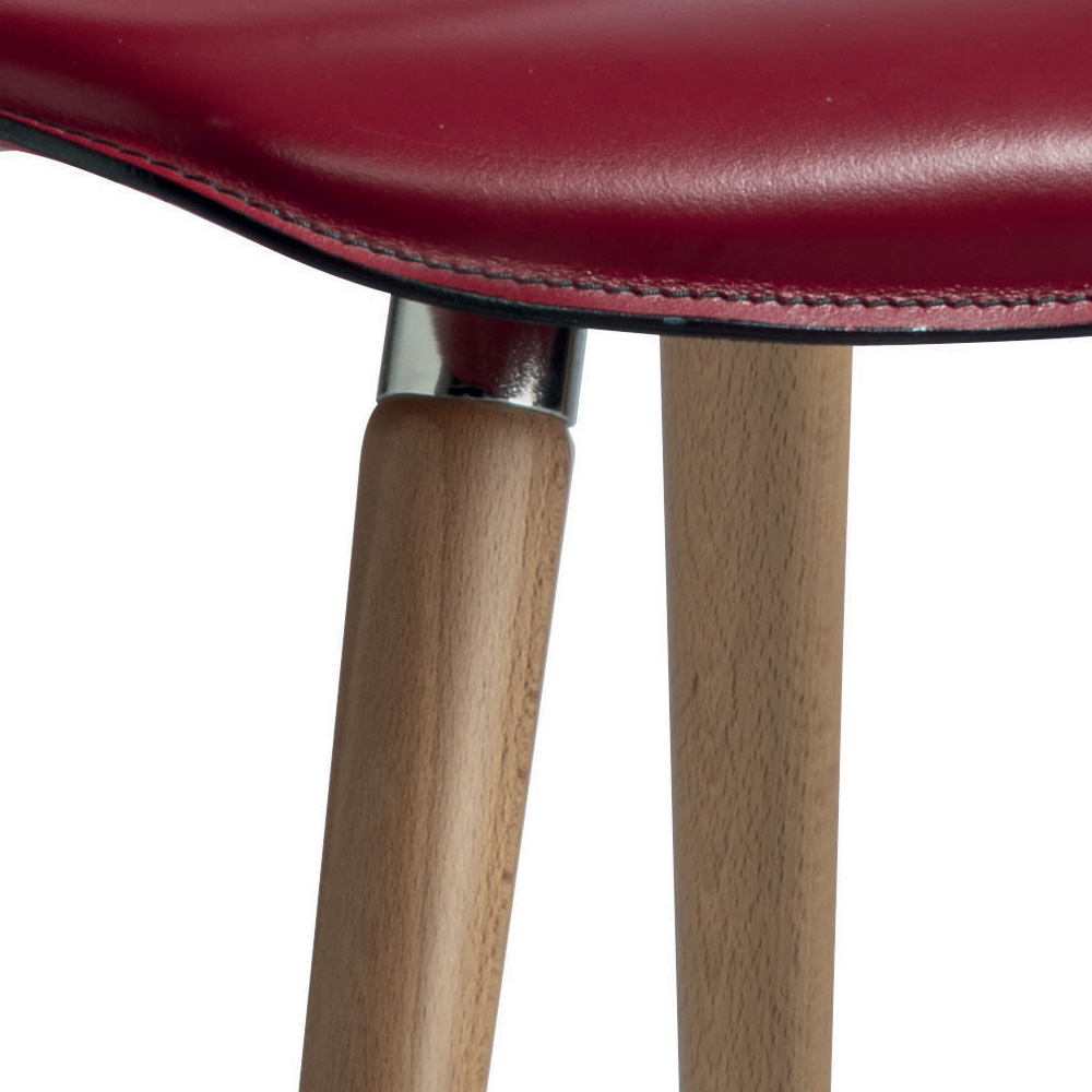 Innenstuhl mit Monocoque -Struktur aus Naturbuche , Sitz und Rückenlehne aus dunkelbraunem regeneriertem Leder, vollständig in Italien hergestellt .