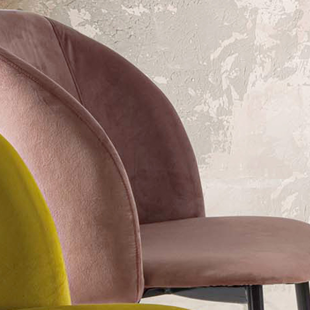 Stuhl für Esszimmer oder Küche aus schmutzabweisendem Samt mit schwarz lackierten Metallbeinen . Farbe, Lebendigkeit und eine starke Persönlichkeit zeichnen diesen raffinierten Stuhl aus, der mit einer geschwungenen Rückenlehne ausgestattet ist, die unvergleichlichen Komfort sowie einen bequemen und besonders einladenden Sitz bietet . Dank der Möglichkeit, zwischen der Version mit gesteppter und der glatten Rückenlehne zu wählen, kann es auf jeden Bedarf reagieren, indem es sowohl einen Artikel mit einer attraktiven und modernen Ästhetik als auch eine nüchternere und diskretere Variante anbietet, die sich auch als äußerst zuverlässig erweisen vielseitig .