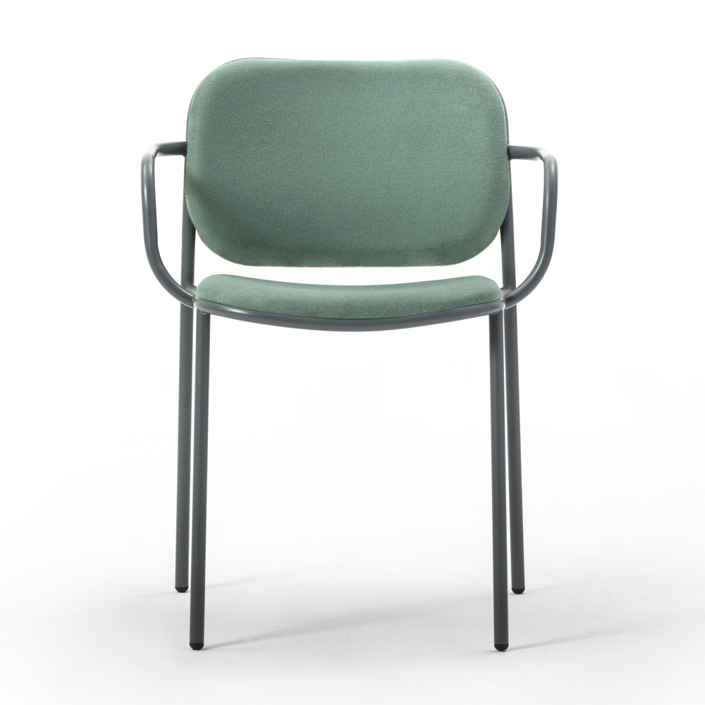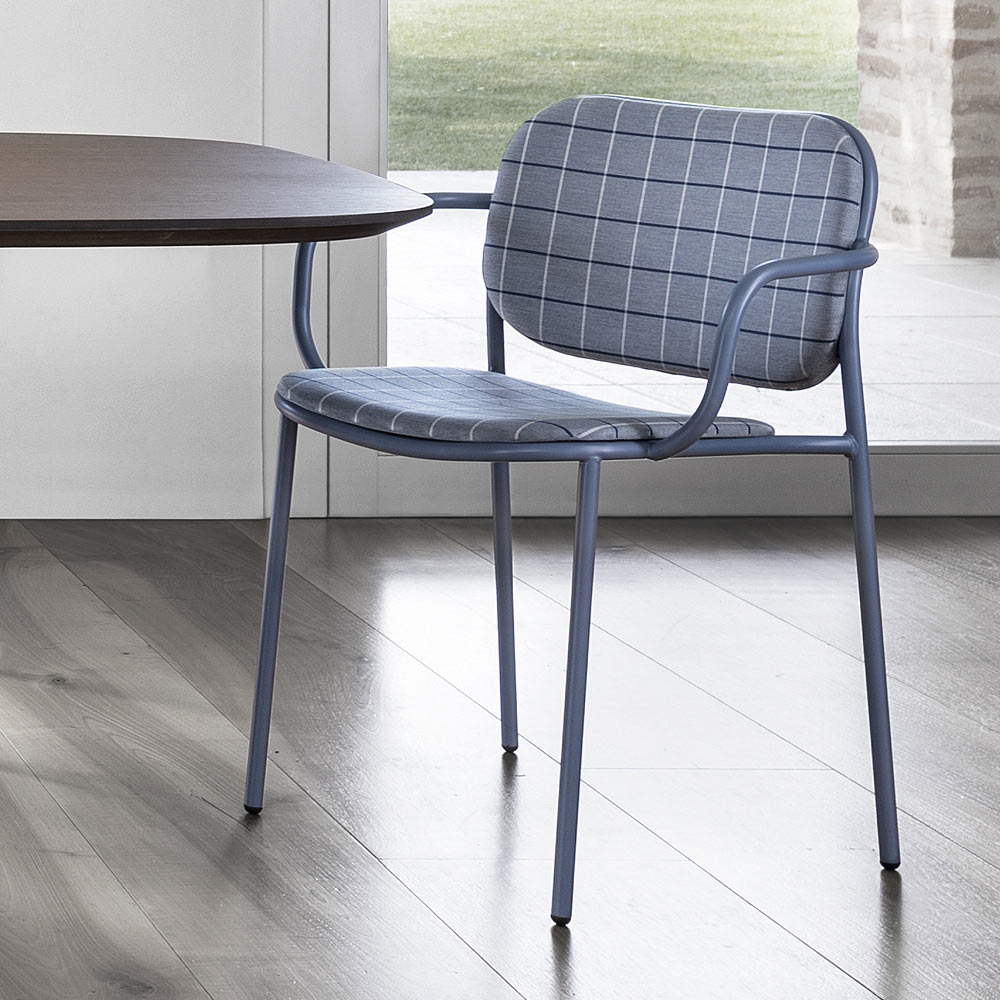 Die weiche Polsterung vervollständigt die Ästhetik und bietet einen einladenden Sitz, der sich ideal eignet, um sich in modern eingerichteten Wohnbereichen wertvolle Momente der Entspannung zu gönnen, auch dank der praktischen Armlehnen, die es Ihnen ermöglichen, eine korrekte und bequeme Position beizubehalten. Die Möglichkeit des Stapelns betont auch seine funktionale Seite und macht ihn zu einer perfekten Lösung auch für Objektumgebungen wie Bars und Restaurants, wo es wichtig ist, den Raum zu optimieren, wenn die Stühle nicht benutzt werden.