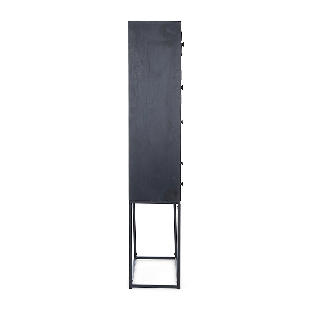 Dieses Design-Sideboard für das Wohnzimmer verfügt über eine Mangoholzstruktur mit MDF-Rücken, Türen und Schubladen sowie Stahlknöpfen.