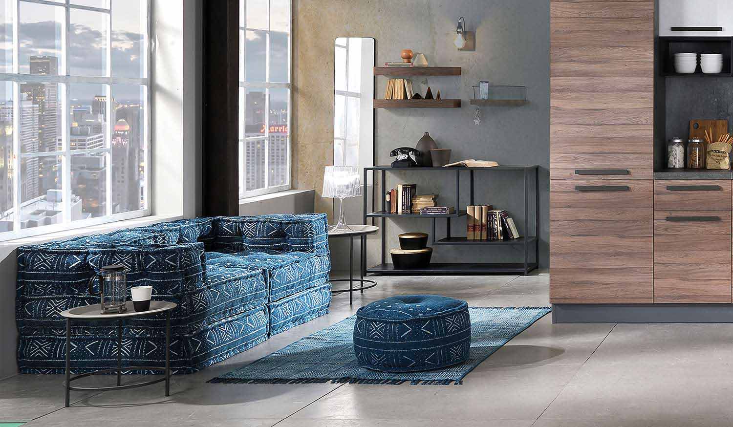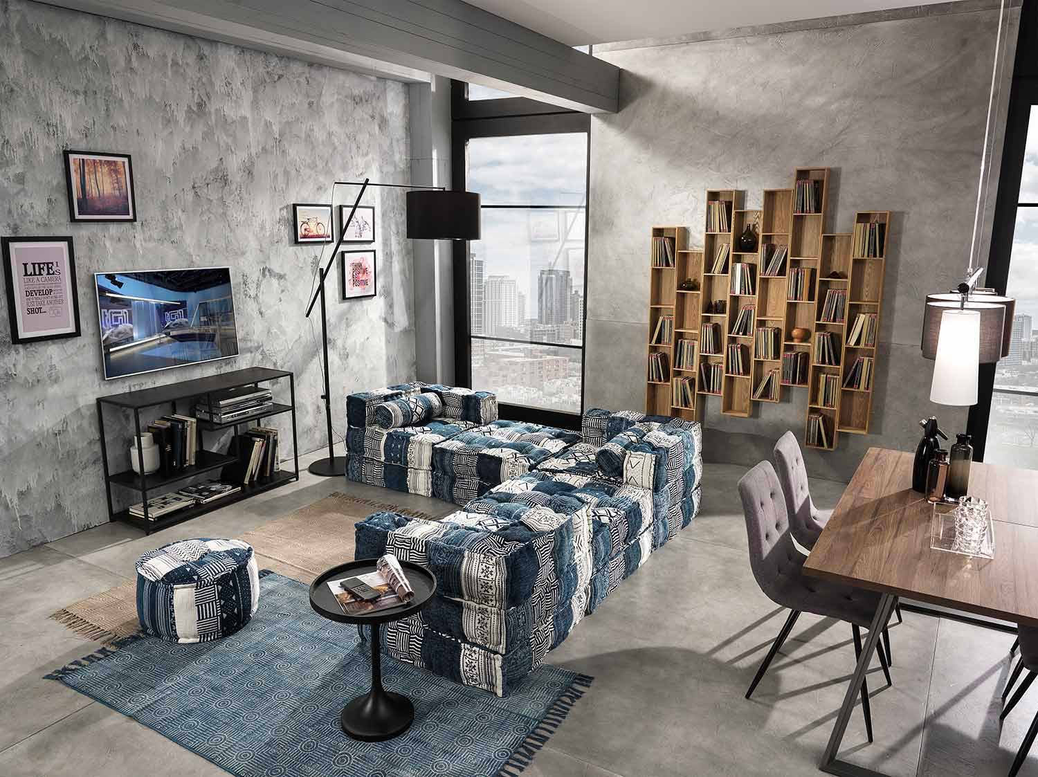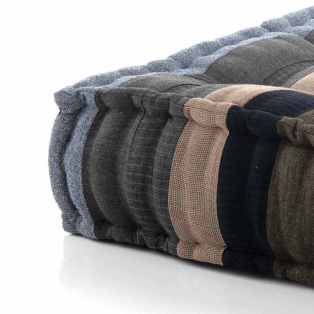 Fibra ist der quadratischeSitzpuff, der vollständig aus Baumwollgewebe in Patchwork- oder Samttechnik besteht. In siebzehn verschiedenen Farben erhältlich:
