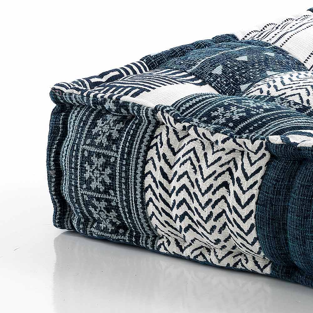 Sitzpuff aus Patchworkstoff oder quadratischem Samt mit ethnischem Design.