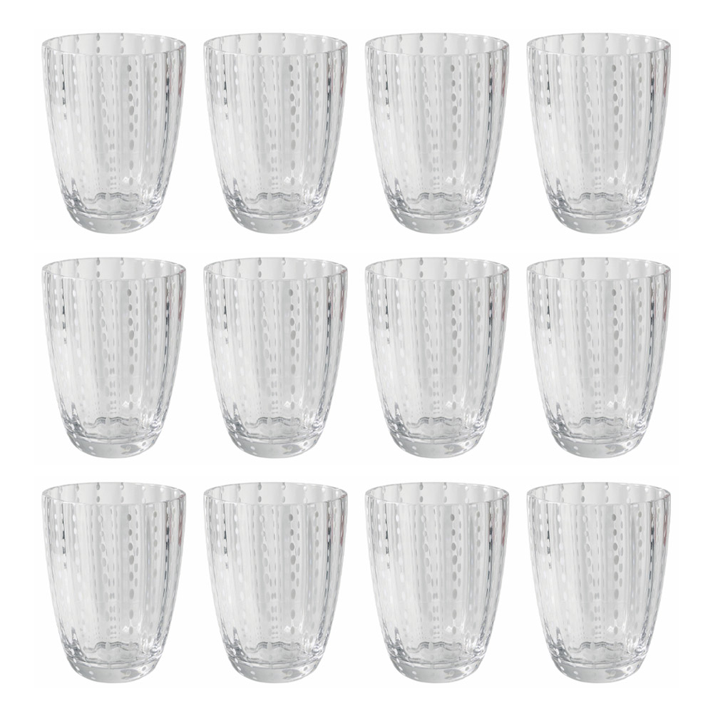 Wassergläser aus farbigem Glas mit weißen Dekorationen 12 Stück.