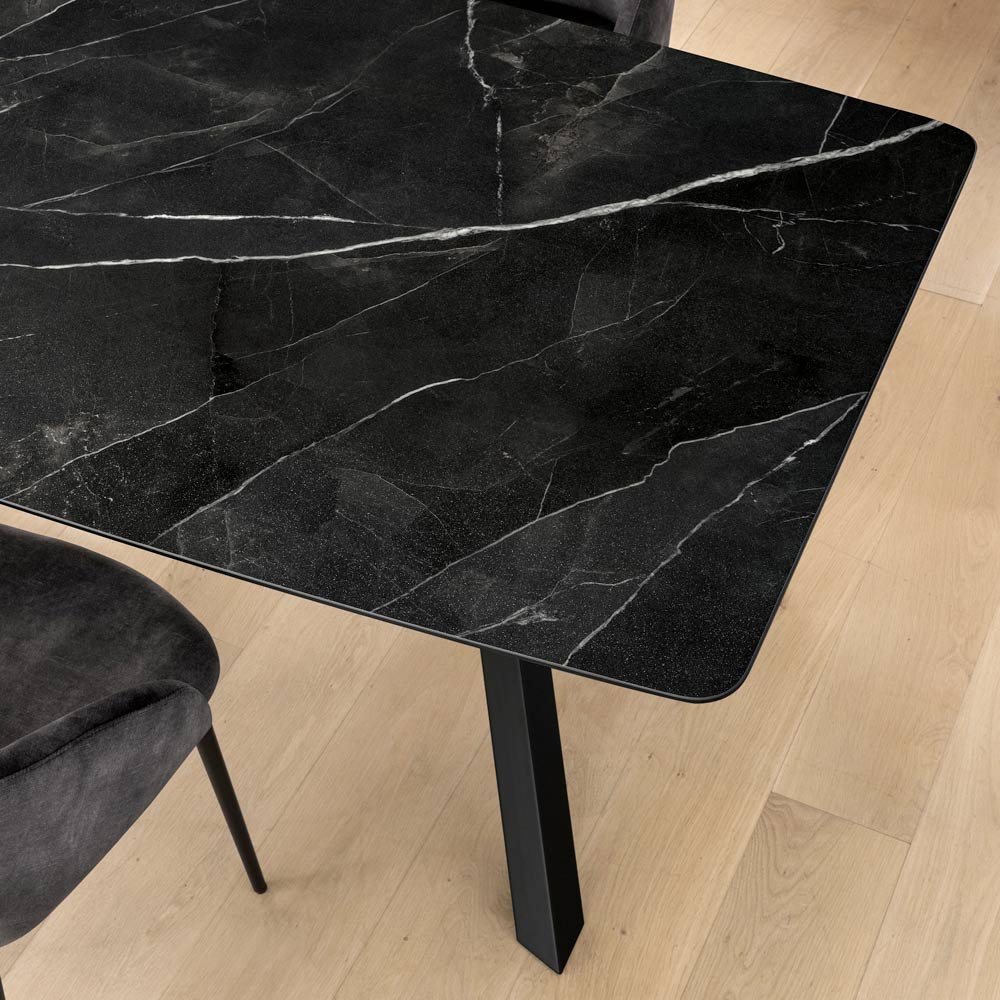 Absolute Eleganz und hervorragende Materialien: Dieser feste Tisch aus Laminam und Metall ist für diejenigen gedacht, die ein Möbelstück mit starker optischer Wirkung in ihr Zuhause oder in einen Vertragsraum bringen möchten, ohne auf Widerstandsfähigkeit und Funktionalität zu verzichten.