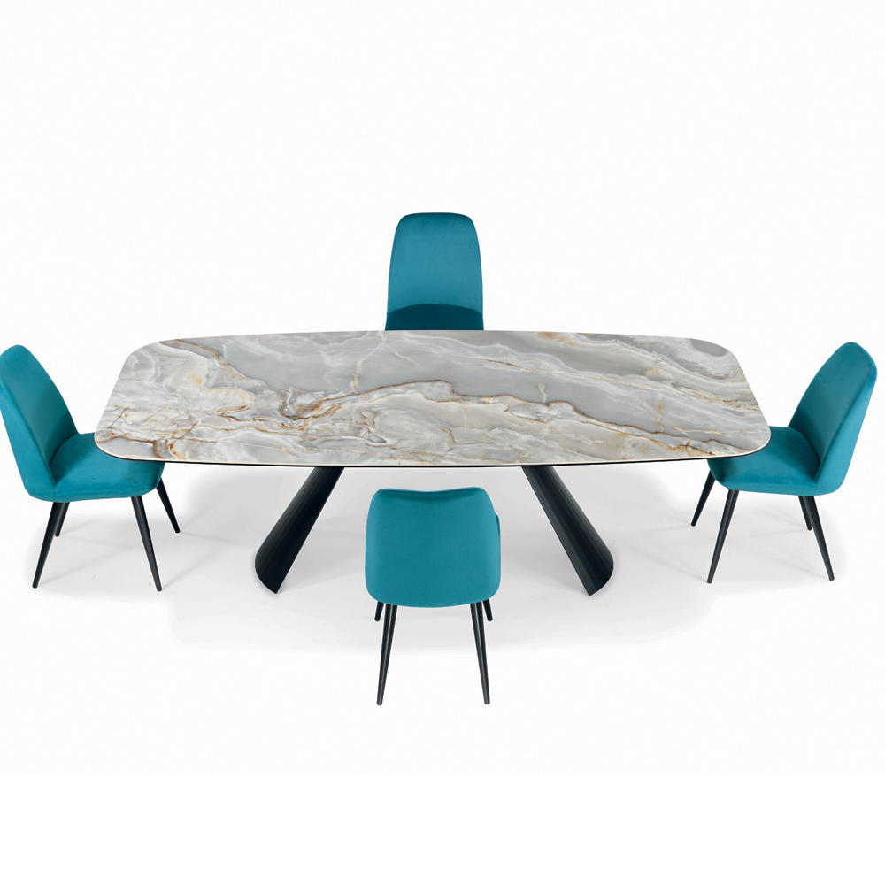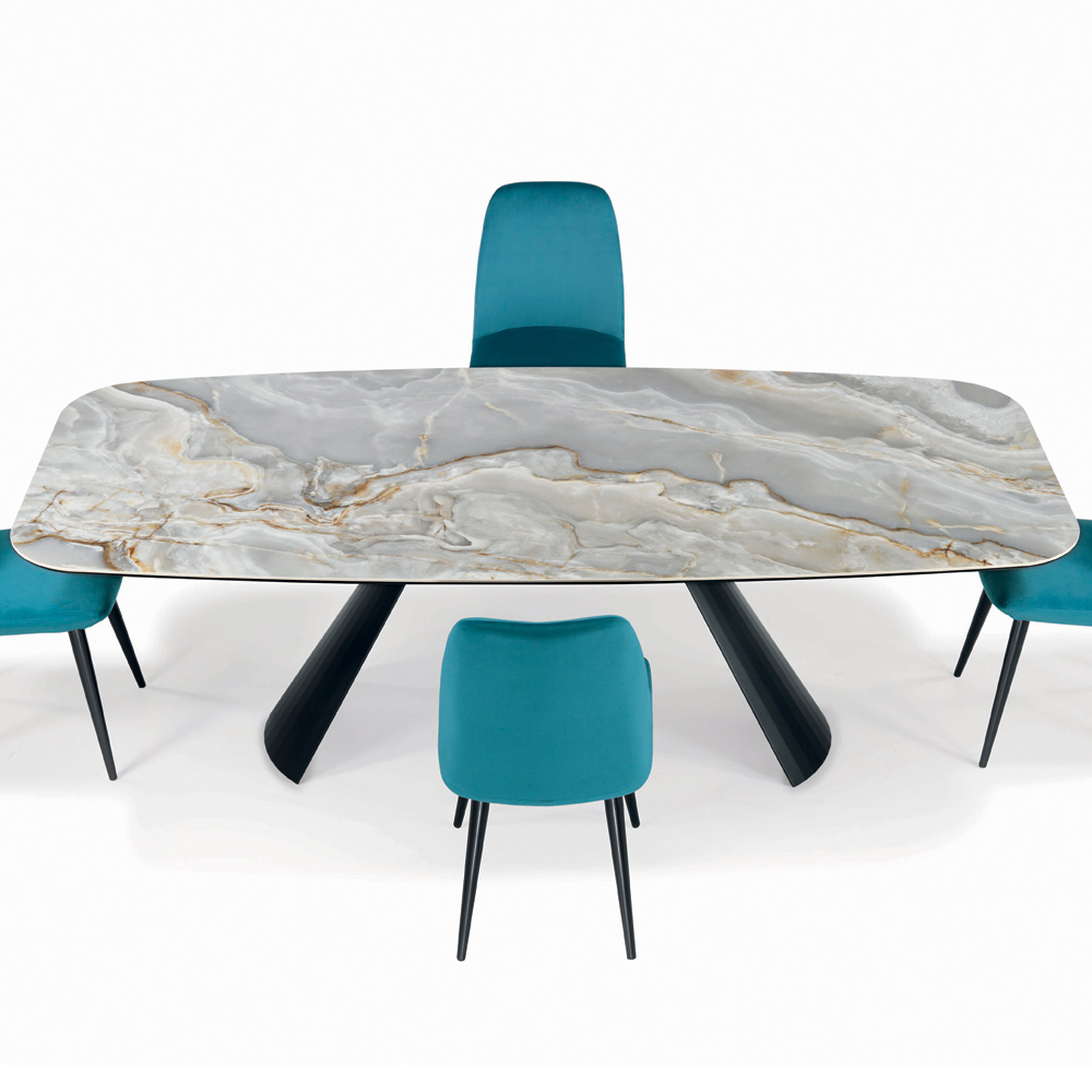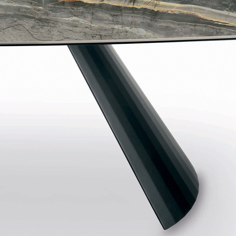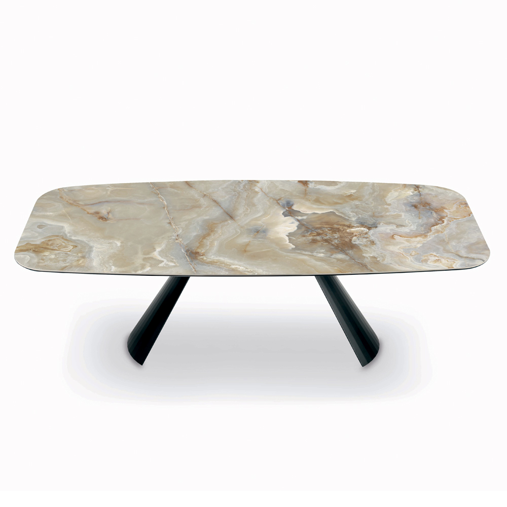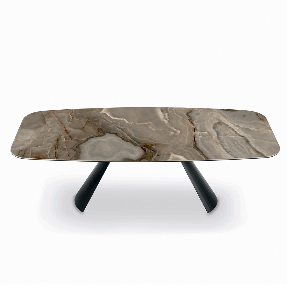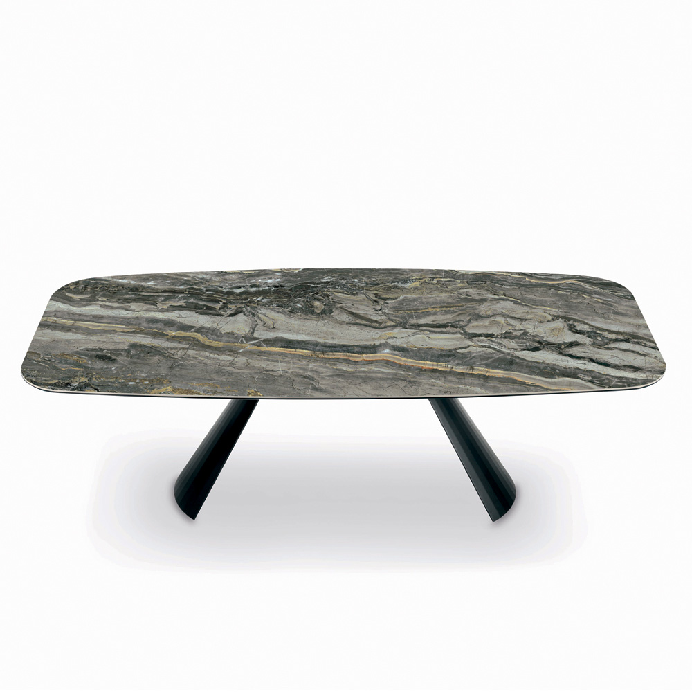 Fester, tonnenförmiger Wohnzimmertisch mit Keramikplatte , 45° abgeschrägter Kante , schwarz lackiertem Stahlgestell und verstellbaren Füßen. Die Auswahl hochwertiger Materialien und die Liebe zur Gestaltung jedes einzelnen Details schaffen ein Produkt von ausgezeichneter Qualität „Made in Italy“ . Dank der Form des Gestells und der verfügbaren Ausführungen ist dieser Tisch der Protagonist jeder alltäglichen Objektumgebung und eine perfekte Idee für alle, die dem Raum eine elegante, prächtige und einzigartige Note verleihen möchten.