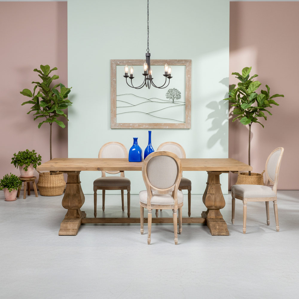 Dieser natürlich gealterte Kieferntisch besticht durch seinen authentischen und zeitlosen Charme und eignet sich ideal zur Aufwertung großer Räume wie Ess- oder Wohnzimmer. Die gealterte Oberfläche betont die Holzstruktur und hebt Maserung, Astlöcher und Unregelmäßigkeiten hervor, die jeden Tisch zu einem Unikat machen.