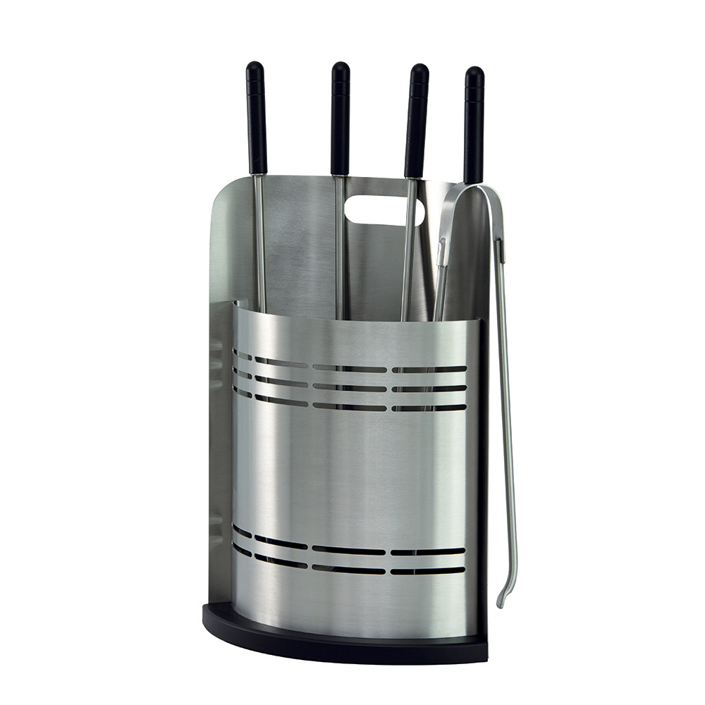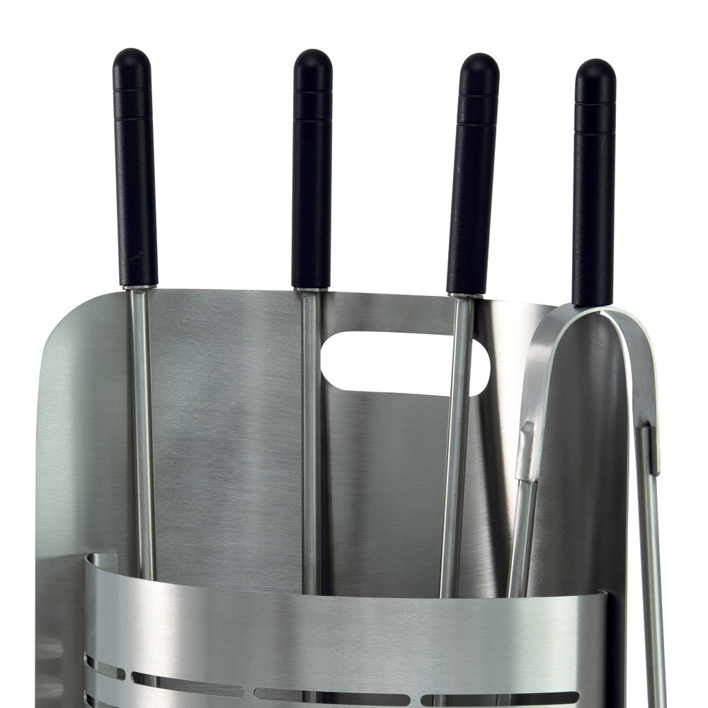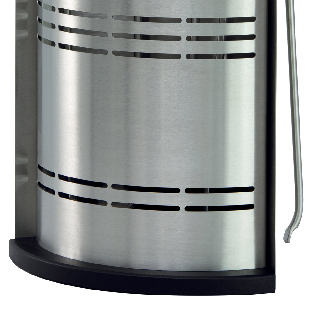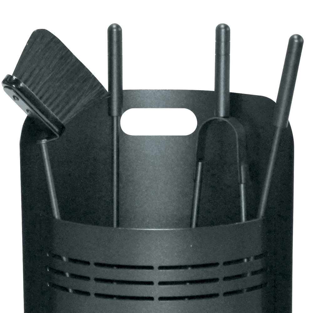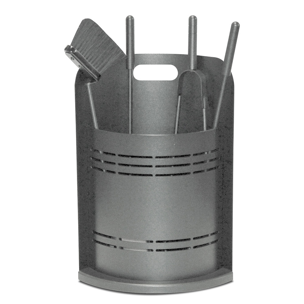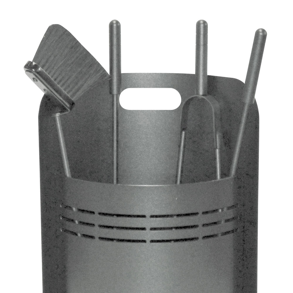 Dieser Kaminbesteckhalter ist ideal für alle, die einen Hauch von modernem Design suchen. Seine zylindrische Form ist elegant und platzsparend, während die horizontalen Schlitze nicht nur ein auffälliges optisches Detail schaffen, sondern auch für eine ausreichende Belüftung der Ausrüstung sorgen.