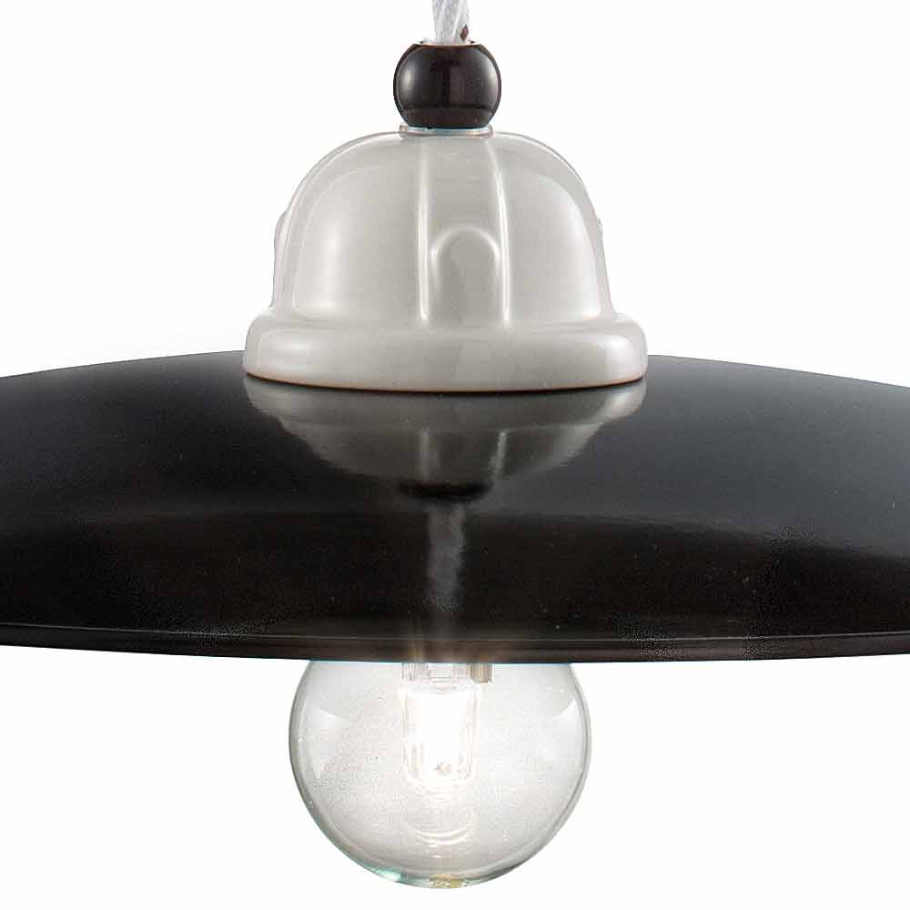 Melissa Ferroluce handgefertigte Up- und Down-Lampe aus Keramik Melissa ist eine fantastische Auf- und Ab-Pendelleuchte, die von erfahrenen Handwerkern in Italien handgefertigt wird. Lampe aus glänzend schwarzer Keramik, was die äußere Oberfläche des Diffusors betrifft, während die Struktur, der Rahmen und das Kabel eine glänzend weiße Oberfläche haben. Melissa ist in verschiedenen Größen erhältlich. Die Besonderheit dieser schönen Lampe liegt in ihrer Form und ihrem Design. Ausgestattet mit einem einzigartigen und originellen Stil bringt Melissa einen überarbeiteten Vintage-Industriestil mit sich und ist in der Lage, sich an alle Möbel anzupassen, von den einfachsten und minimalistischsten bis zu den klassischsten, wodurch ein zarter Kontrast entsteht, dank all dem ist dies möglich bis hin zu seinen schlichten, geradlinigen und schnörkellosen Oberflächen. Eine weitere Besonderheit dieser schönen Aufhängung ist die Möglichkeit, die Höhe dank der vertikalen Verschiebung des Gegengewichts nach Belieben einzustellen. Klare Farben und glänzende Oberflächen bestimmen das Profil dieser fantastischen Pendelleuchte. Melissa hat ein aktuelles Design, behält aber die Erinnerung an einen vergangenen Stil. Bringen auch Sie einen Hauch von Design in Ihr Zuhause und wählen Sie die Größe, die am besten zu Ihnen passt!