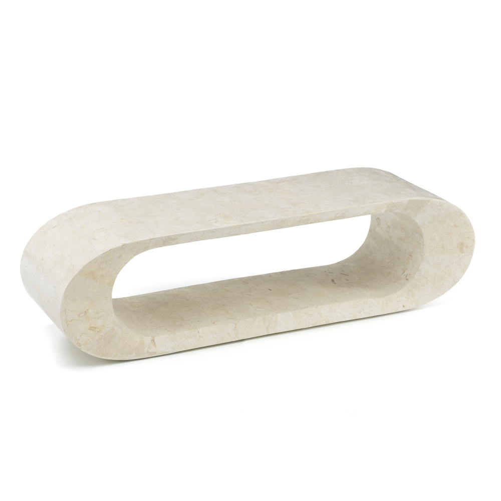 Die Couchtische der FossilStone- Kollektion sind einzigartig, da sie aus echtem Fossilstein gefertigt sind. Dieses kostbare Material ist das Ergebnis natürlicher Prozesse, die in den Epochen und Jahrtausenden nach der Erschaffung der Erde stattfanden. Der fossile Stein wird von erfahrenen Handwerkern von Hand in Form kleiner Fliesen geschnitten, die sie anschließend einzeln auftragen, als ob sie ein Mosaik auf einer Meeressperrholzstruktur oder einer Glasfaserform zusammensetzen würden.