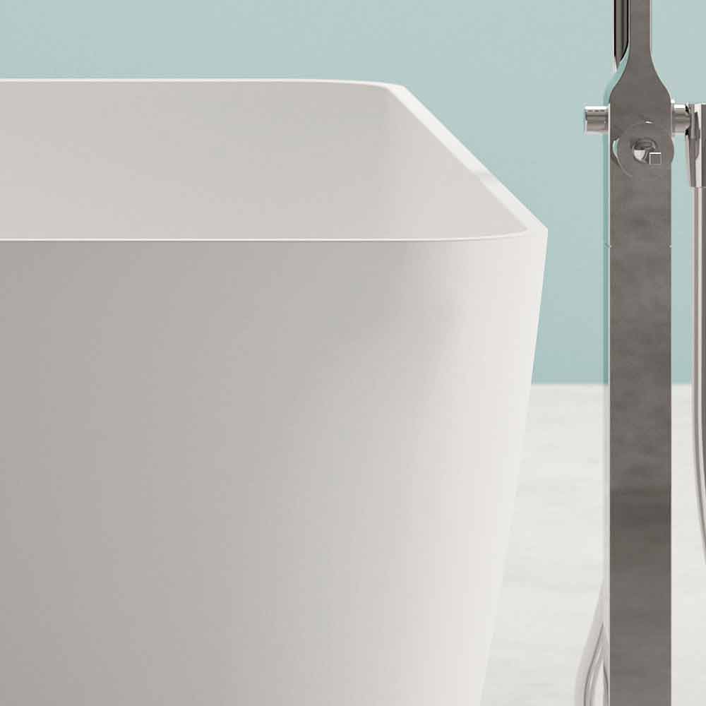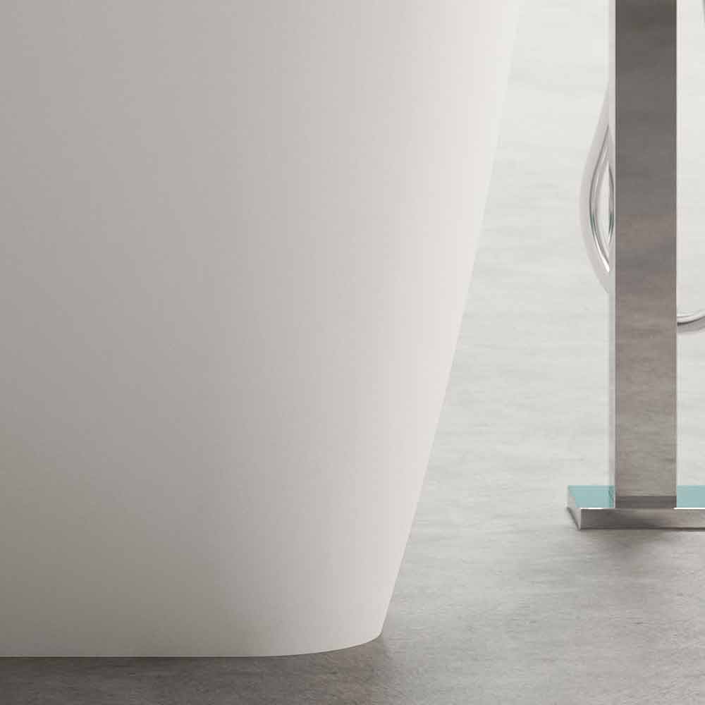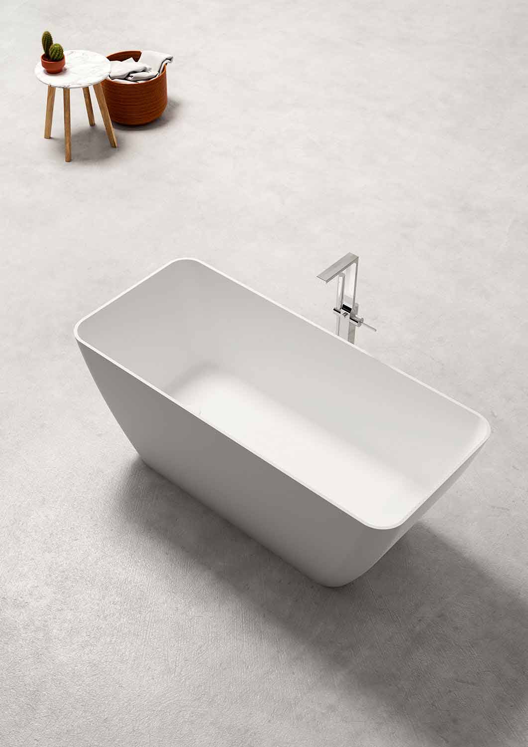 Die Face Badewanne ist ein freistehendes Modell, hergestellt in Italien. Geometrisch und rational, mit einfachen und definierten Linien, ist es ideal für diejenigen, die Minimalismus in der Form suchen. Als Material kommt die Solid Surface zum Einsatz, die Hochleistung mit einer Materialästhetik mit natürlichem Effekt verbindet. Hohe UV-Beständigkeit. Vielseitig, formbar, im Laufe der Zeit unveränderlich. Diese Eigenschaften machen es perfekt für das Badezimmer, widerstandsfähig und gleichzeitig raffiniert. In unseren Produkten sowohl in glänzender als auch in matter Ausführung interpretiert, ist es mit seiner faszinierenden Ästhetik in der Lage, selbst die anspruchsvollsten Kunden zufriedenzustellen. Die Badewanne ist komplett mit Abflussstopfen- und Endsiphon ausgestattet. Die DesignSolidSurface-Formel, die vom wichtigsten italienischen Unternehmen der Branche entwickelt wurde und das Ergebnis eingehender Forschungen zu Verbundwerkstoffen für feste Oberflächen ist, ist einzigartig. Bei Verbundwerkstoffen ist DesignSolidSurface unser Mineralwerkstoff. Diese Materialfamilie bietet Design eine unbegrenzte Bandbreite an technischen und ästhetischen Möglichkeiten. Sein seidiger und warmer Griff in Kombination mit seinem mineralischen Aussehen und seinem Lichtreflexionsindex machen es zu einem Material, das jedes Stück zum Protagonisten des Badezimmers machen kann.