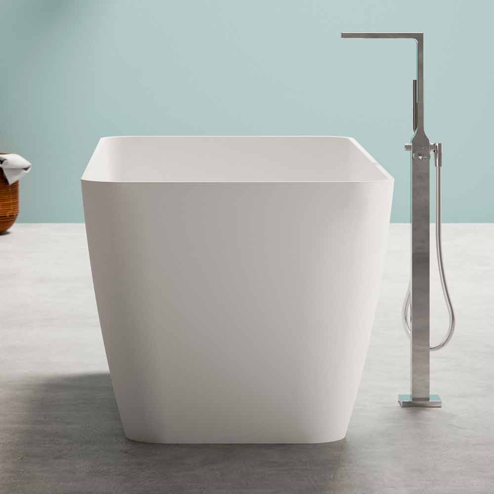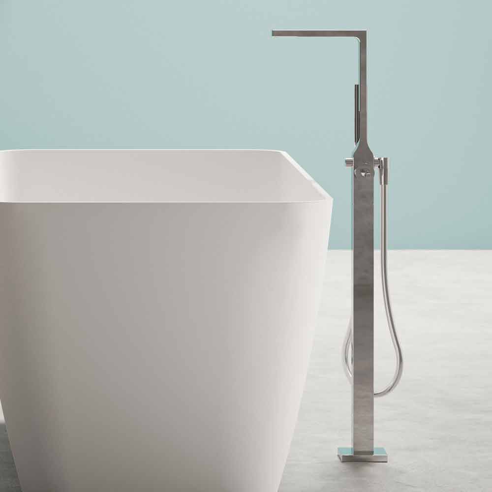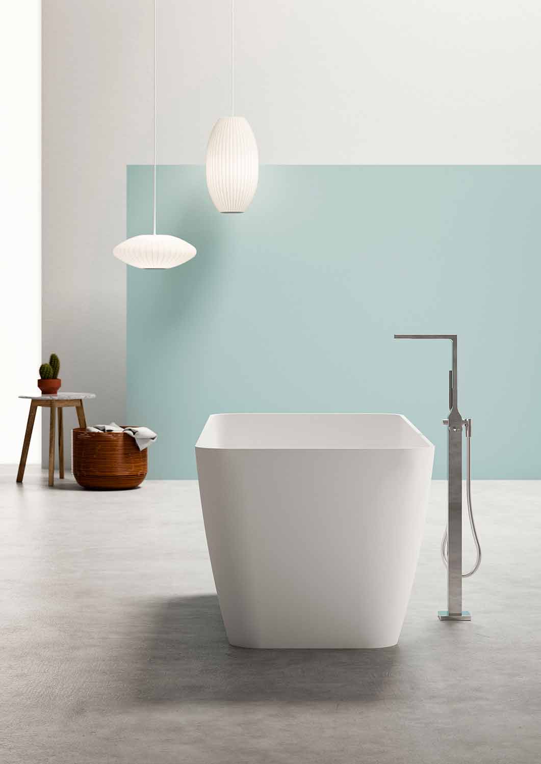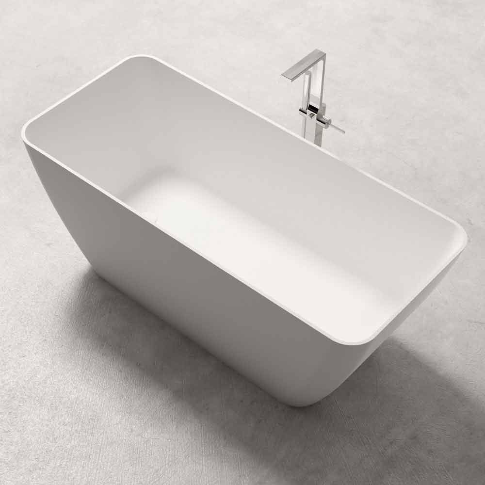 Die Face Badewanne ist ein freistehendes Modell, hergestellt in Italien. Geometrisch und rational, mit einfachen und definierten Linien, ist es ideal für diejenigen, die Minimalismus in der Form suchen. Als Material kommt die Solid Surface zum Einsatz, die Hochleistung mit einer Materialästhetik mit natürlichem Effekt verbindet. Hohe UV-Beständigkeit. Vielseitig, formbar, im Laufe der Zeit unveränderlich. Diese Eigenschaften machen es perfekt für das Badezimmer, widerstandsfähig und gleichzeitig raffiniert. In unseren Produkten sowohl in glänzender als auch in matter Ausführung interpretiert, ist es mit seiner faszinierenden Ästhetik in der Lage, selbst die anspruchsvollsten Kunden zufriedenzustellen. Die Badewanne ist komplett mit Abflussstopfen- und Endsiphon ausgestattet. Die DesignSolidSurface-Formel, die vom wichtigsten italienischen Unternehmen der Branche entwickelt wurde und das Ergebnis eingehender Forschungen zu Verbundwerkstoffen für feste Oberflächen ist, ist einzigartig. Bei Verbundwerkstoffen ist DesignSolidSurface unser Mineralwerkstoff. Diese Materialfamilie bietet Design eine unbegrenzte Bandbreite an technischen und ästhetischen Möglichkeiten. Sein seidiger und warmer Griff in Kombination mit seinem mineralischen Aussehen und seinem Lichtreflexionsindex machen es zu einem Material, das jedes Stück zum Protagonisten des Badezimmers machen kann.