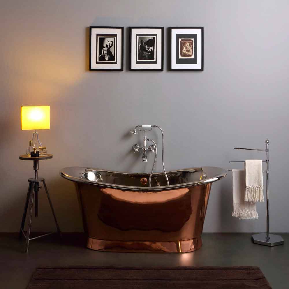 Freistehende Badewanne mit Nickel- und Kupferfinish Angelica Angelica ist eine schöne freistehende Badewanne mit einem einzigartigen und unnachahmlichen Design. Handgefertigte Badewanne mit Struktur vollständig aus Kupfer, komplett mit Innenbeschichtung aus poliertem Nickel und Außenbeschichtung aus Kupfer. Badewanne im Vintage-Stil, die Schönheit und Eleganz vereint und Ihrem Zuhause einen Hauch von Klasse verleiht. Angelica ist in drei verschiedenen Größen erhältlich. Bringen Sie auch einen Hauch von Design in Ihr Zuhause und wählen Sie die Größe, die am besten zu Ihnen passt!