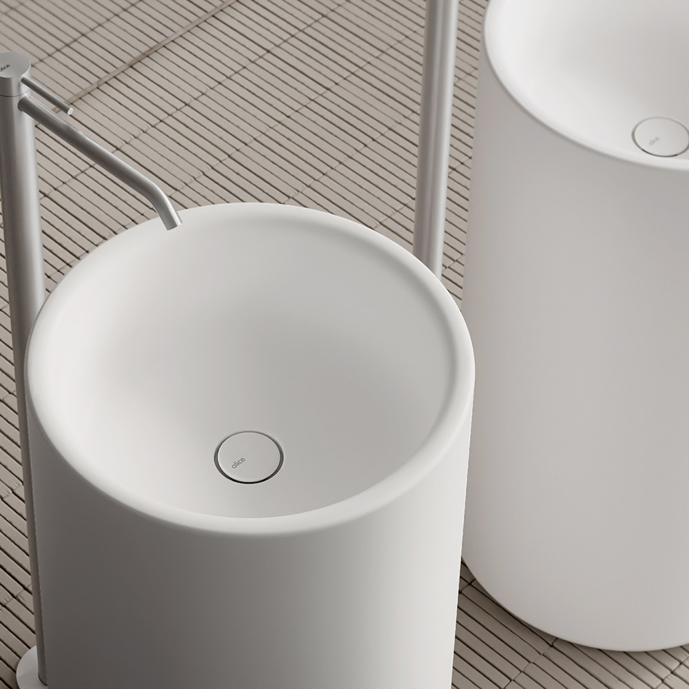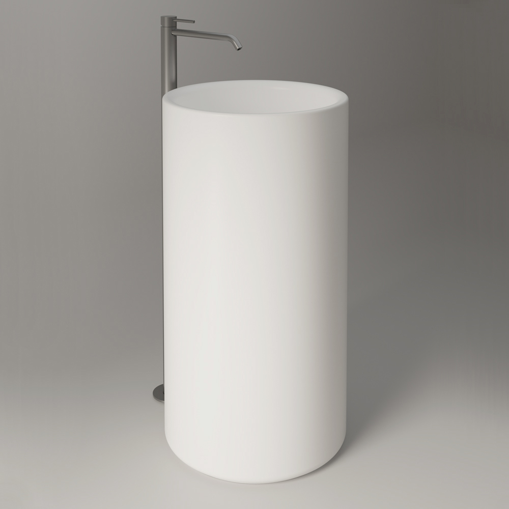 Dieses freistehende Keramikwaschbecken hat eine einfache und harmonische zylindrische Form und kann das Badezimmer in einen anspruchsvollen Raum mit viel Persönlichkeit verwandeln.
