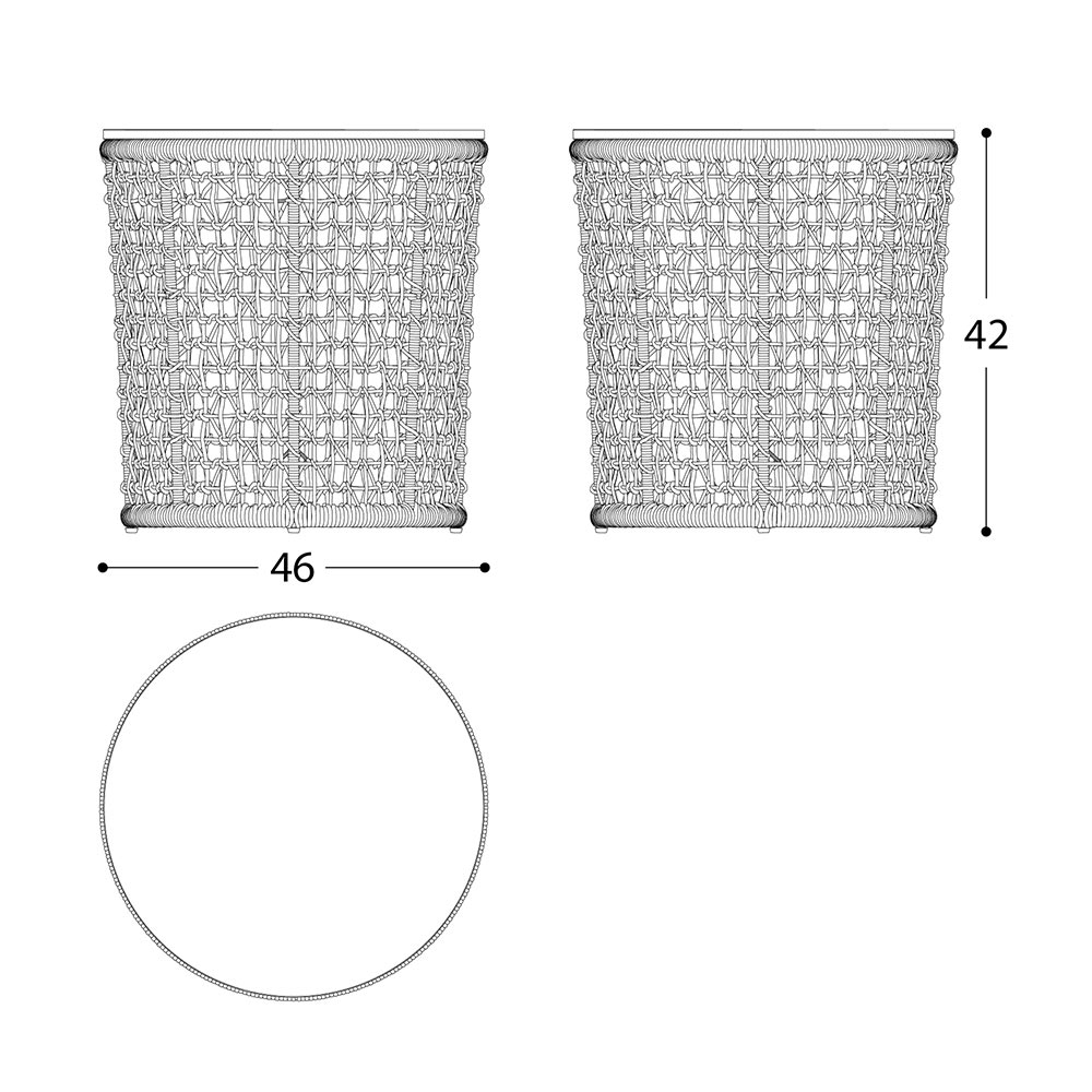 Sein Stil zeichnet sich durch weiche und moderne Linien aus, die seine Einfachheit betonen, während das handgewebte Seil die Ästhetik mit Charakter bereichert.