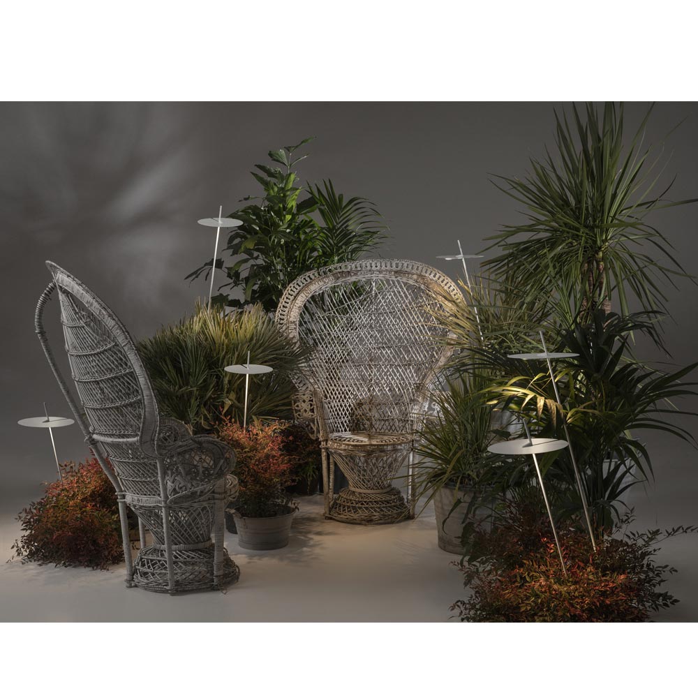 Diese originelle und einzigartige Stehlampe für den Garten zeichnet sich durch ein modernes Design in Form eines Seerosenblattes aus.