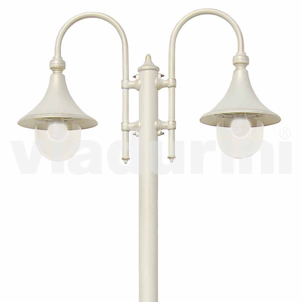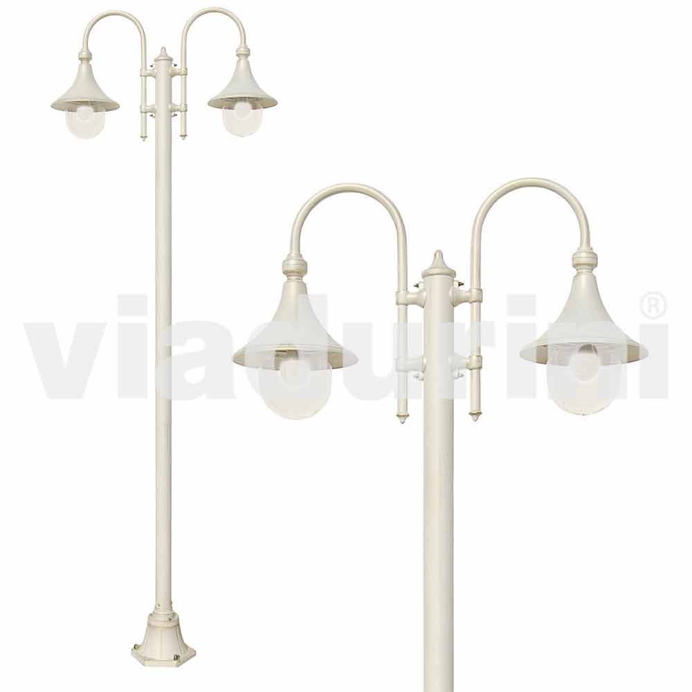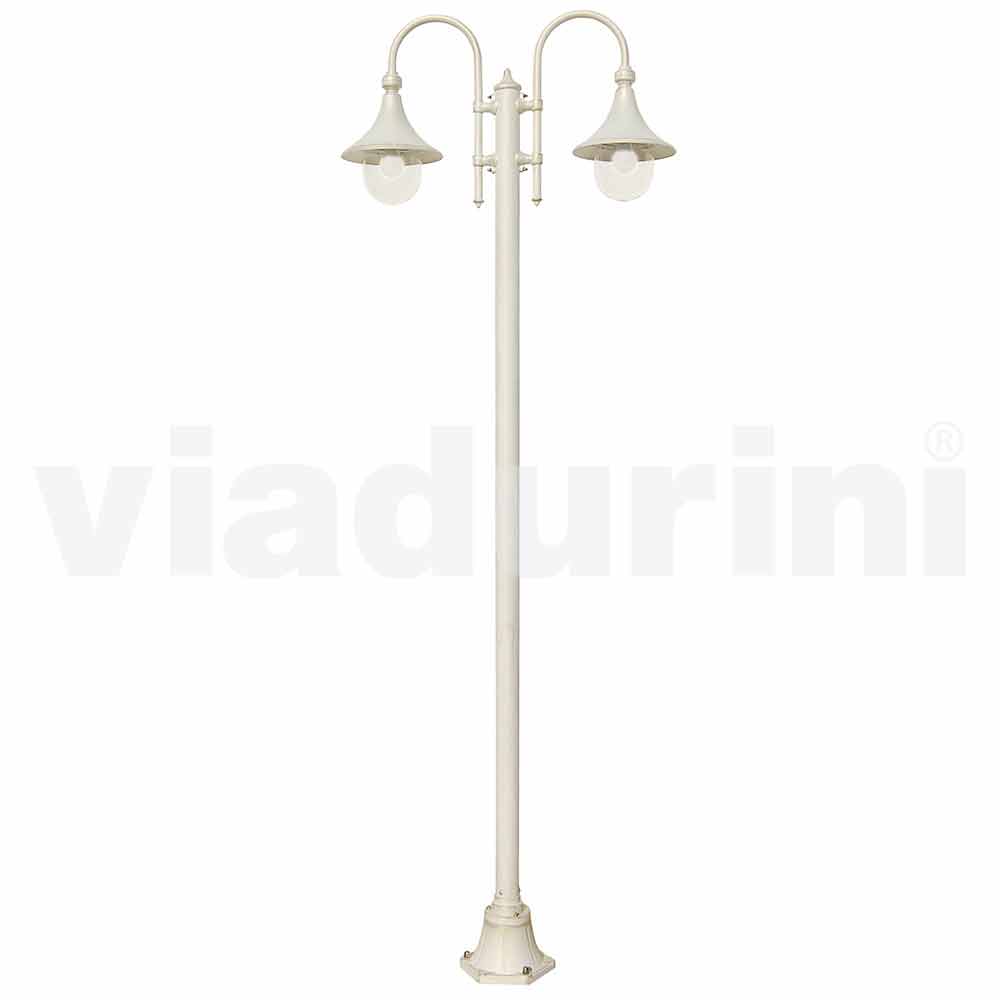 Zweiflammige Gartenlampe aus weißem Aluminium, hergestellt in Italien, Anusca Anusca ist eine majestätische Außenlaterne mit zwei Lichtern, die in Italien aus hochwertigen Materialien handgefertigt wird: Struktur aus Aluminiumdruckguss und Diffusor aus Polycarbonat, erhältlich in den folgenden Varianten: transparent (garantiert eine optimale und stets homogene Lichtstreuung); opal und rauchig.
