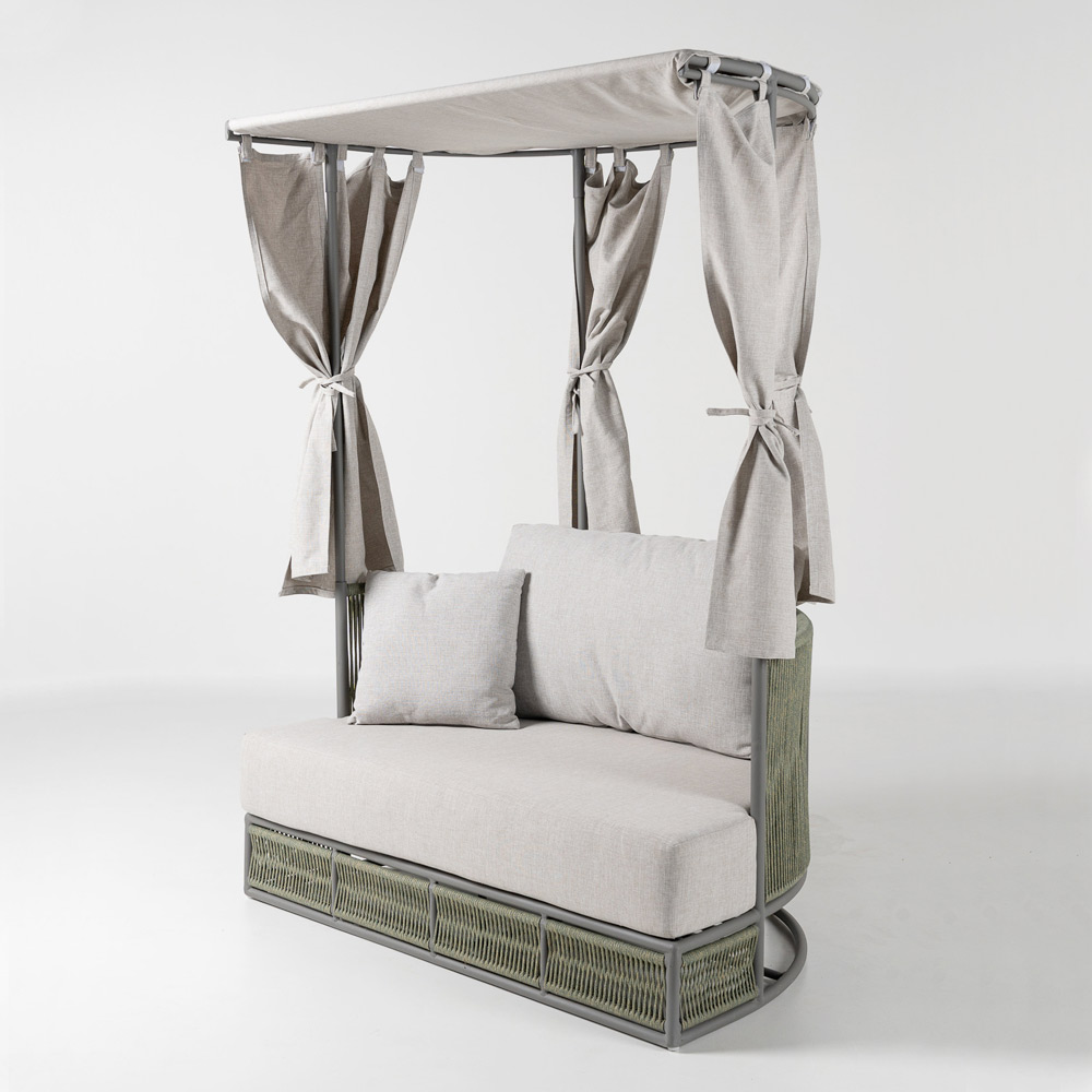 Dieses Tagesbett eignet sich perfekt für Terrassen, Gärten, Hotels oder Loungebereiche und lädt dazu ein, die Natur stilvoll zu genießen: ein Raum, der dem Wohlbefinden, der Entspannung und der Freude am Aufenthalt im Freien gewidmet ist.