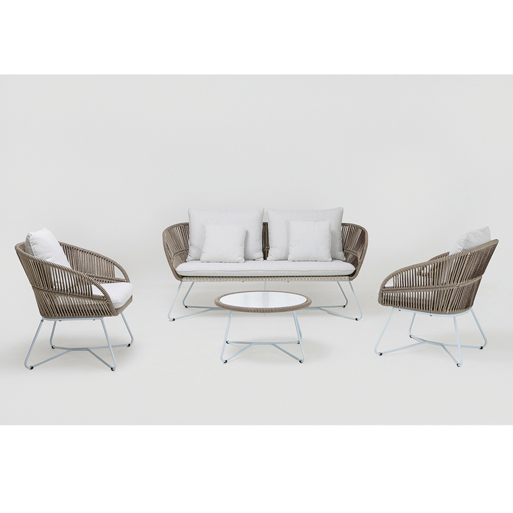 Olefin/PP ROPE-Geflecht mit zweifarbigem Perlweiß und Cappuccino-Finish und Sitzkissen und 2 Rückenkissen aus Outdoor-