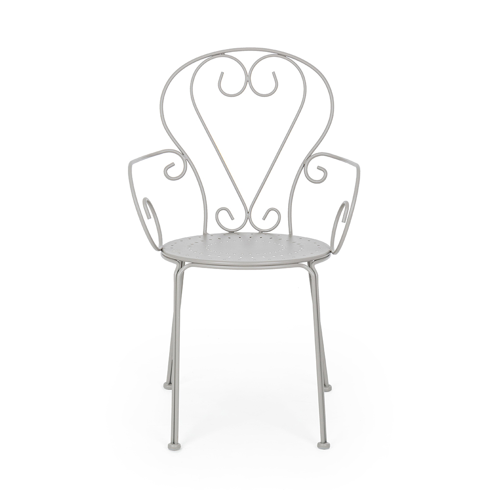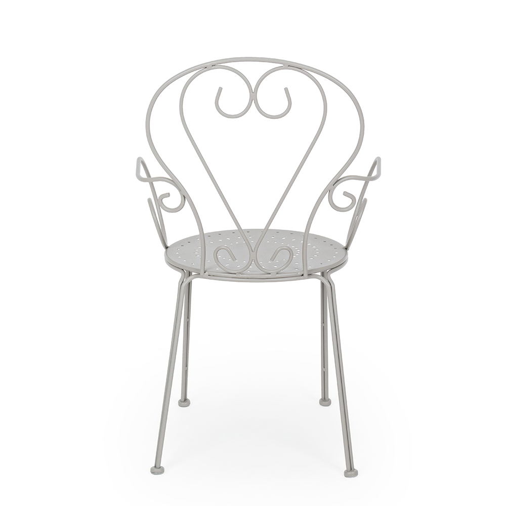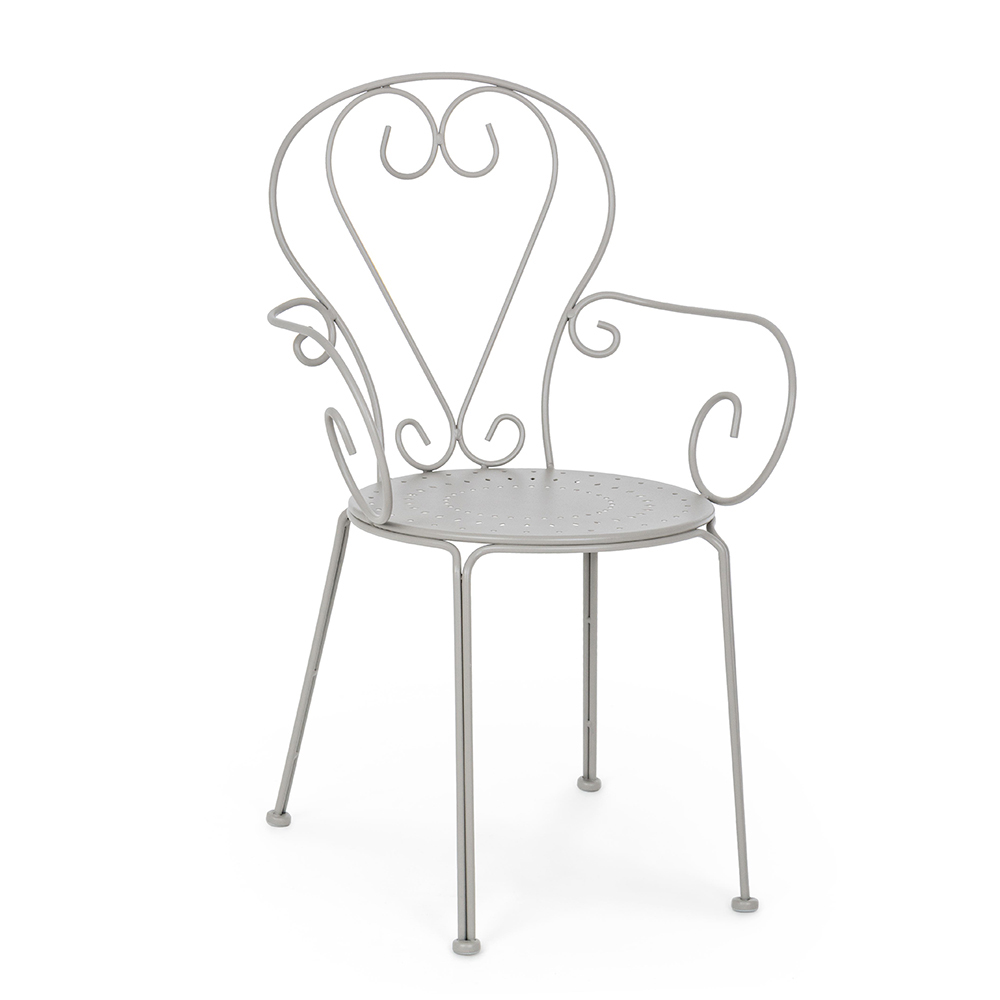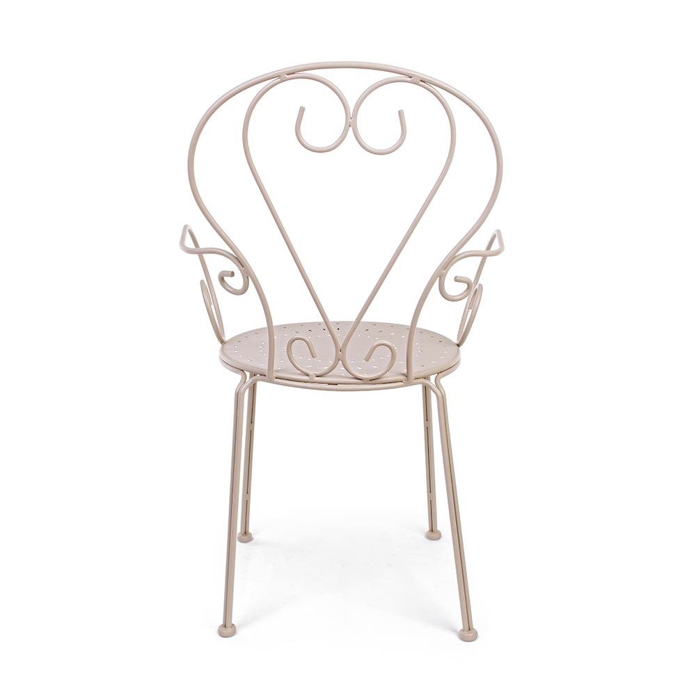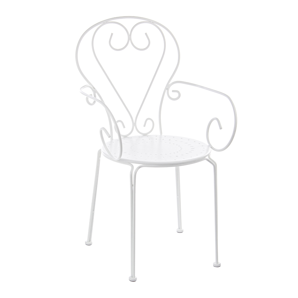 Shabby Chic Gartenstuhl mit Armlehnen aus Stahl.