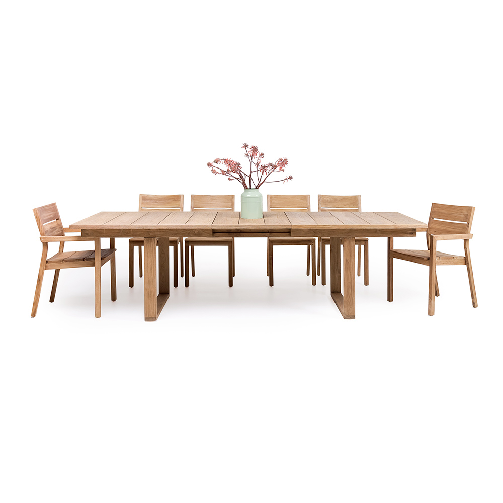 Ausziehbarer Gartentisch auf 270 cm aus Teakholz mit natürlich gebürstetem Finish.