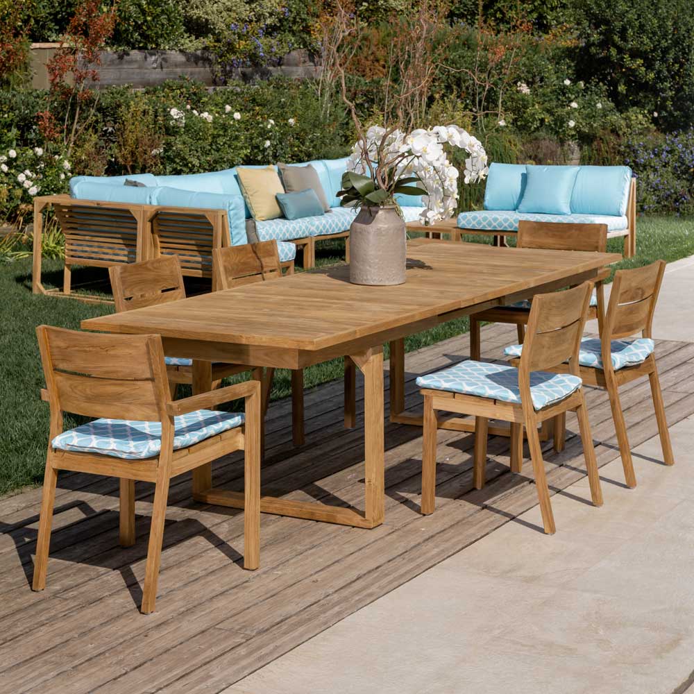 Seine rechteckige Form und die Ausziehbarkeit machen ihn zum perfekten Tisch für die Gestaltung Ihrer Außenbereiche bei geselligen Zusammenkünften. Dieses schlichte, aber harmonisch proportionierte Möbelstück eignet sich für jeden Außenbereich, wie Terrassen, Veranden, Gärten oder den Poolbereich, und schafft eine charmante Atmosphäre. Das verwendete Teakholz garantiert Qualität und Langlebigkeit und macht dieses Einrichtungsaccessoire perfekt für jede Umgebung und jeden Anlass.