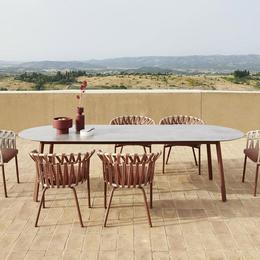 Gartentisch mit Aluminiumbeinen und HPL-Platte Made in Italy.
